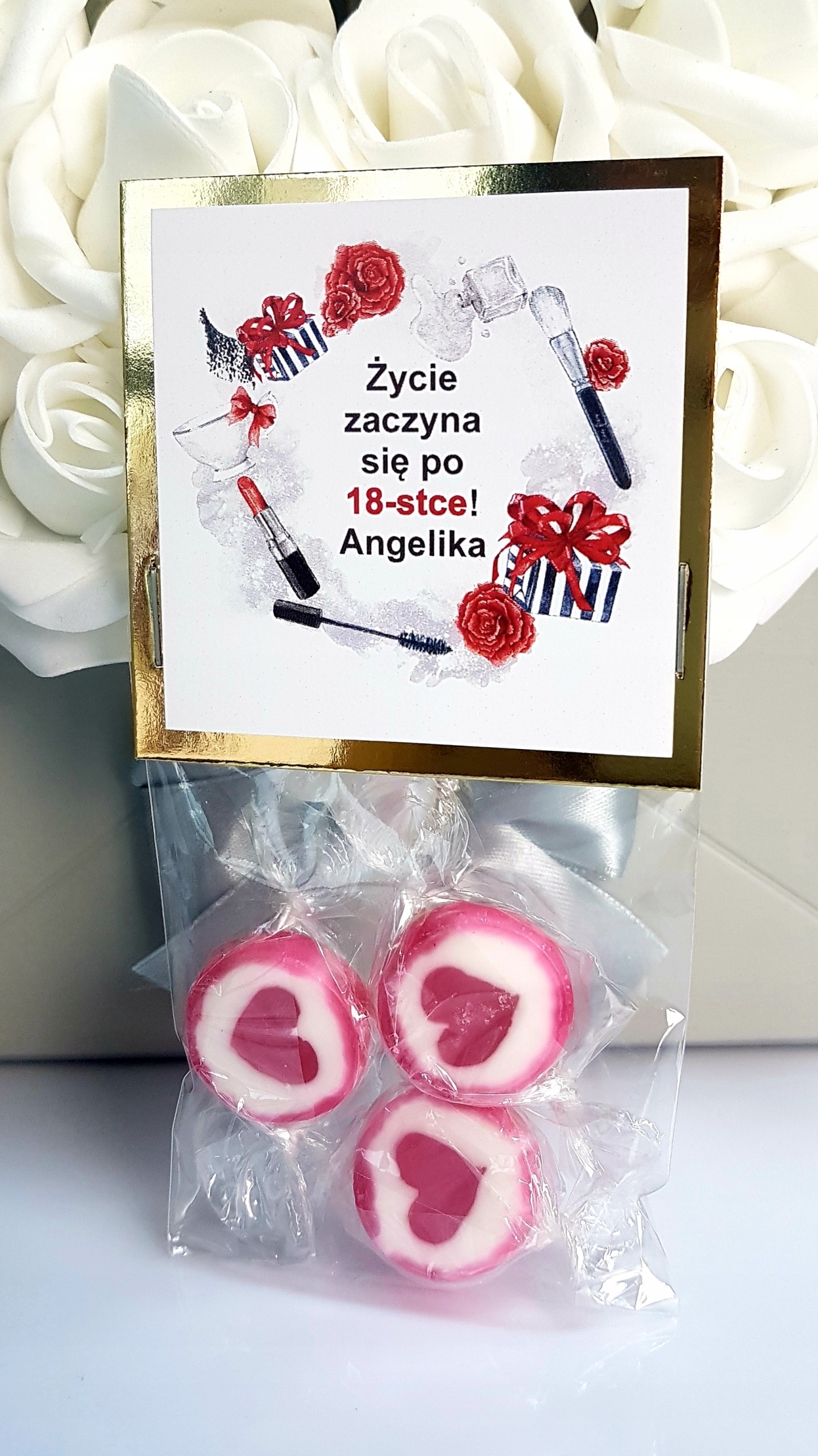 Дизайнерські карамельки з сердечками - 3шт з персоналізованою етикеткою. Етикетка розміщена на найякіснішому «дзеркальному» папері - 300г, який переливається і переливається, красиво відбиваючи світло. (цей ефект важко передати на фотографіях).