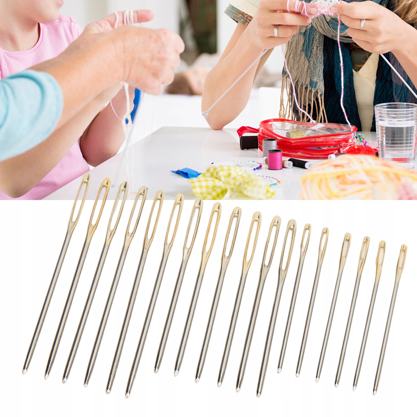 18 шт. Голки швейні з великим вушком, золоті, стійкі, прямі, 8М