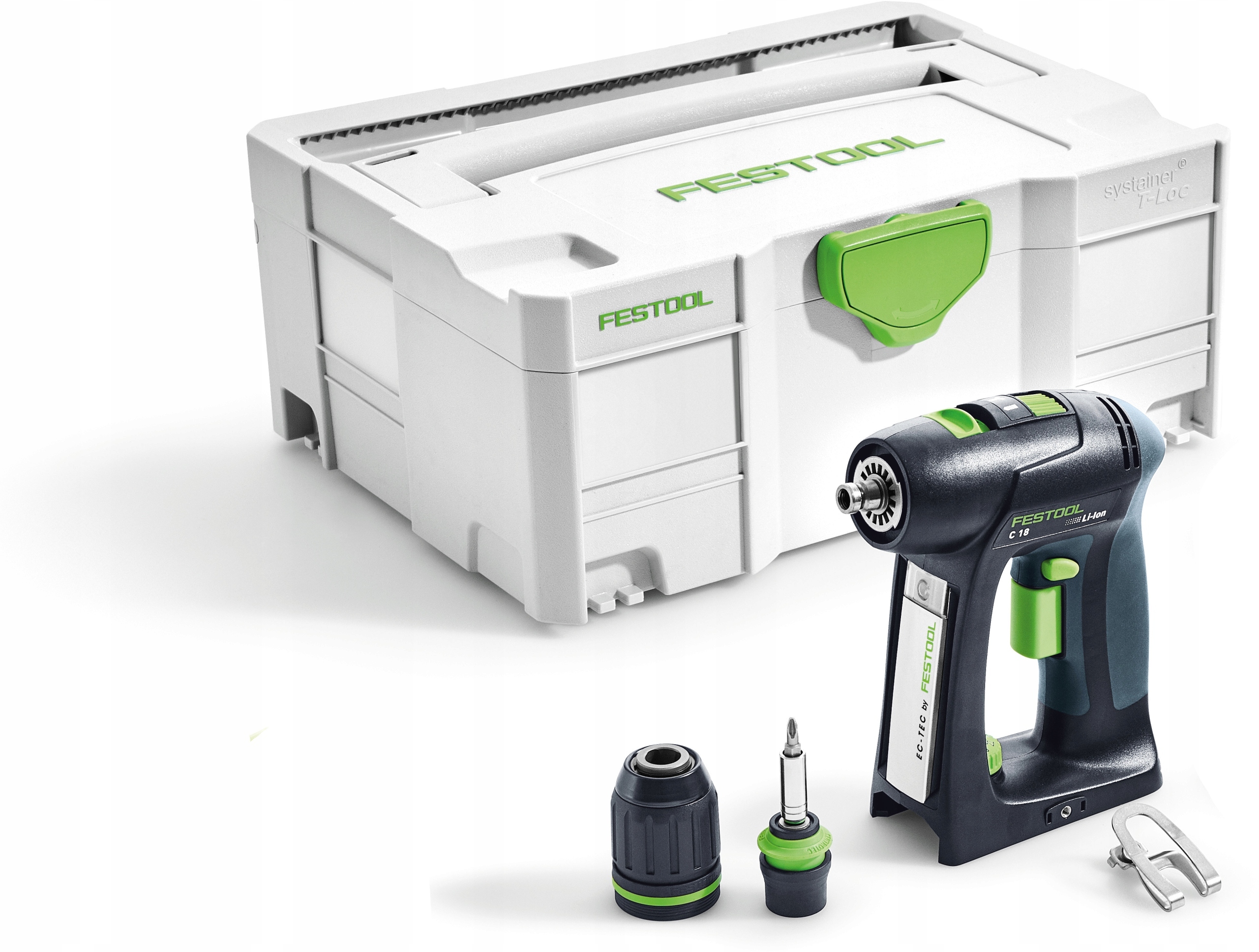 Повна гнучкість під час свердління та загвинчування: повністю електронний контроль крутного моменту, система швидкої зміни CENTROTEC, кутове та ексцентричне кріплення та обмежувач глибини вирішують усі проблеми зі свердлінням та закручуванням. Поєднання Li-HighPower батареї та безщіткового і тому безвідмовного двигуна EC-TEC робить акумуляторну дриль-шуруповерт C 18 легкою, довговічною та стійкою. Акумуляторний шуруповерт і акумулятор повністю захищені Festool Service, тому ви можете працювати спокійно. Інструменти доступні з унікальною формою C або - залежно від індивідуальних уподобань - T, у версії T 18+3.