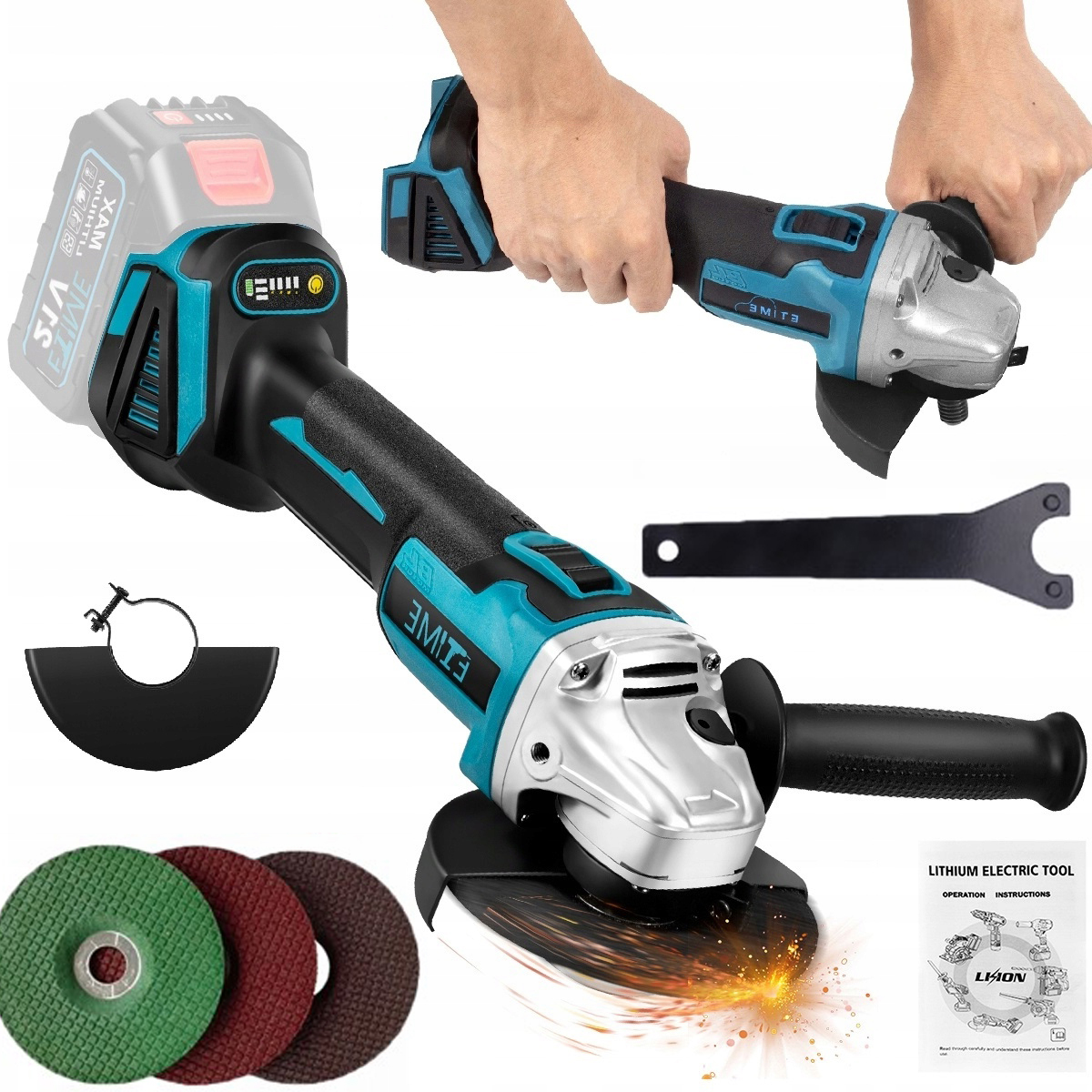 ⚠ ⚠ ⚠ Примітка: кутова шліфувальна машина постачається без батарей. Цей продукт може бути адаптований до 18 В акумулятора.