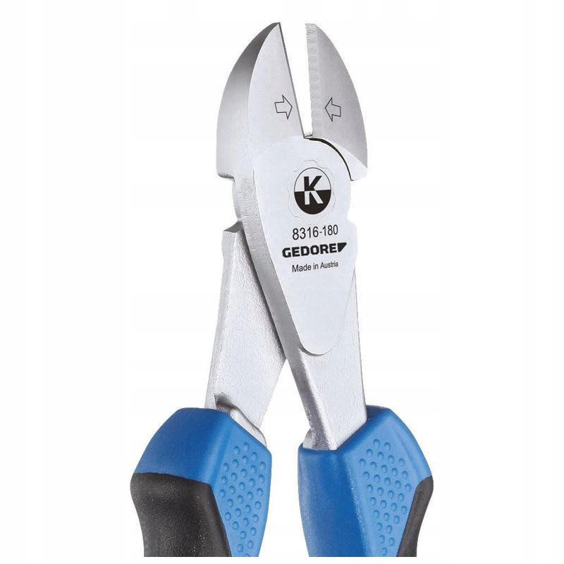 gedore 8316-180 JC IS професійні плоскогубці з бічним різанням 180 мм довжиною , оснащеними індуктивно загартованими лезами з твердістю 63–65 HRC , що гарантує тривалому різниць. Інструмент виготовлений із загартованої сталі , підданий вдосконаленій термічній обробці, матриці, маслії та вивільняється для максимальної міцності.