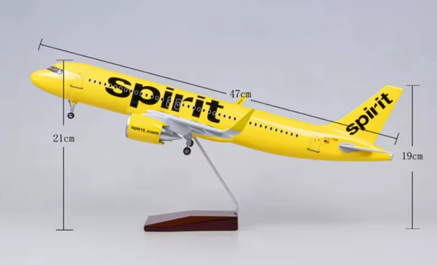 Spirit Airlines Airbus A320, 47 см, дуже модельований матеріал смоли, безкоштовні реквізити на сцену від аеропорту. Подарунок для любителів авіації та подарунок на день народження