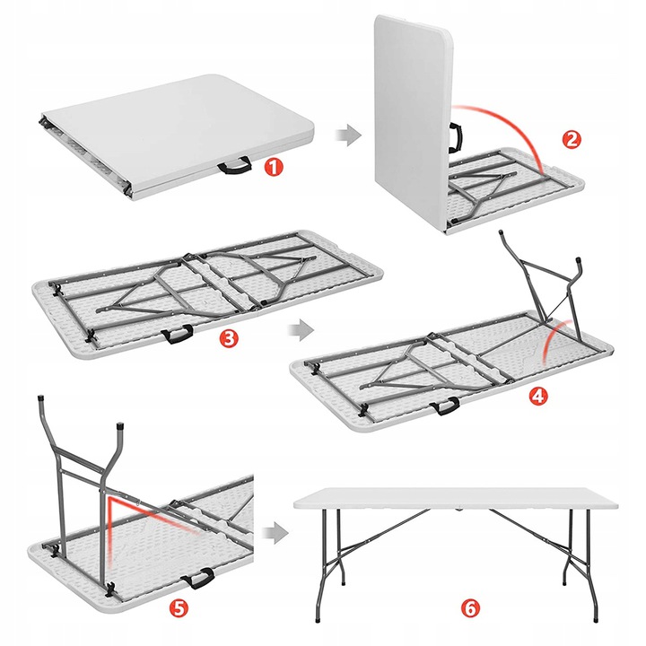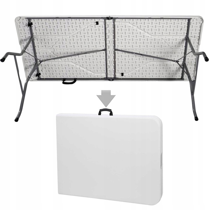 Завдяки функції складання до розміру зручної валізи, складений стіл не займає багато місця, а зручна ручка полегшує транспортування та нести.
