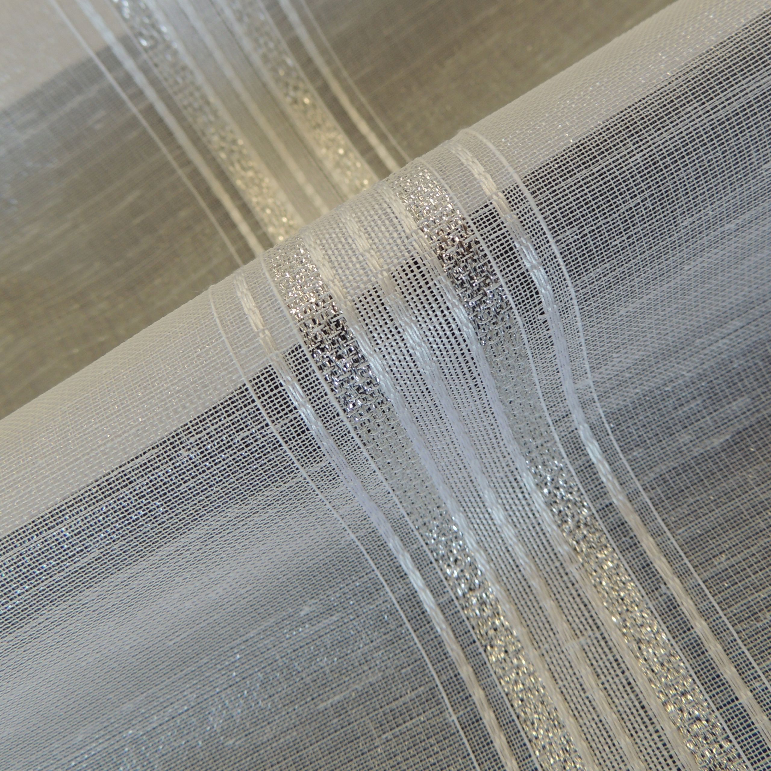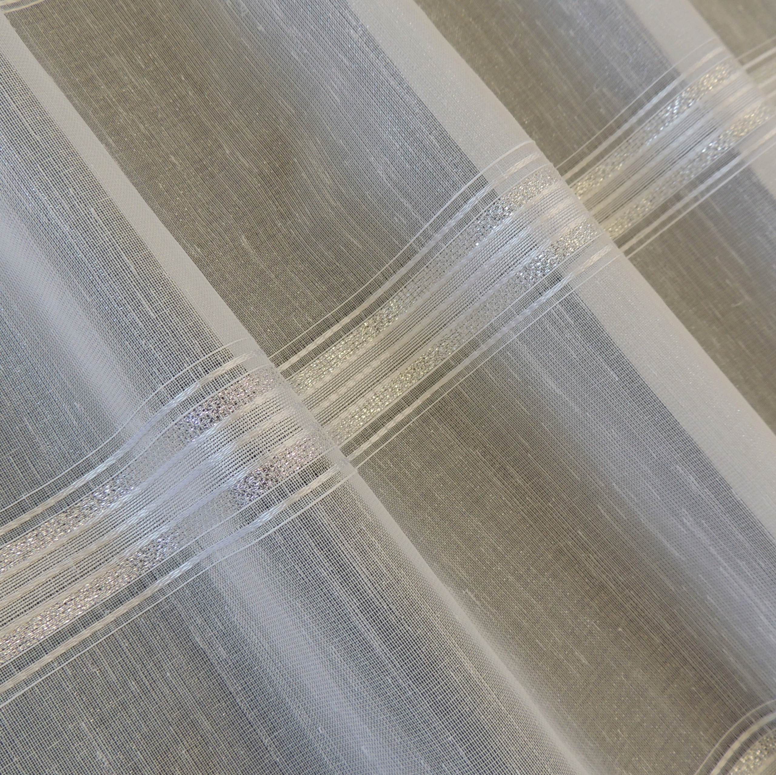 Полірований етамін найвищої якості з привабливими смугами срібла або золота, ідеально підходить для штор, римських штор, панелей тощо. Нижня частина штори оброблена свинцевою вагою