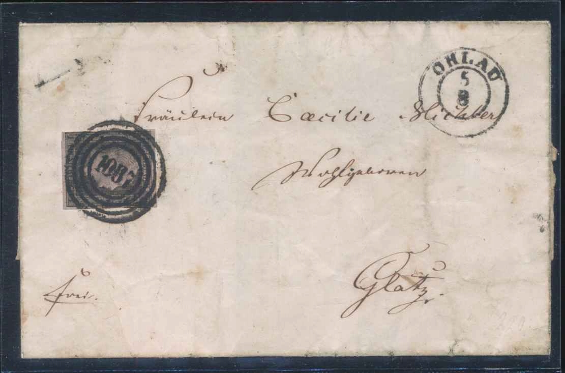 1850 ПРУССІЯ, СІЛЕЗЬКА ГУБЕРНІЯ, конверт ОГЛАУ/ОЛАВА. номерний штемпель 1087.