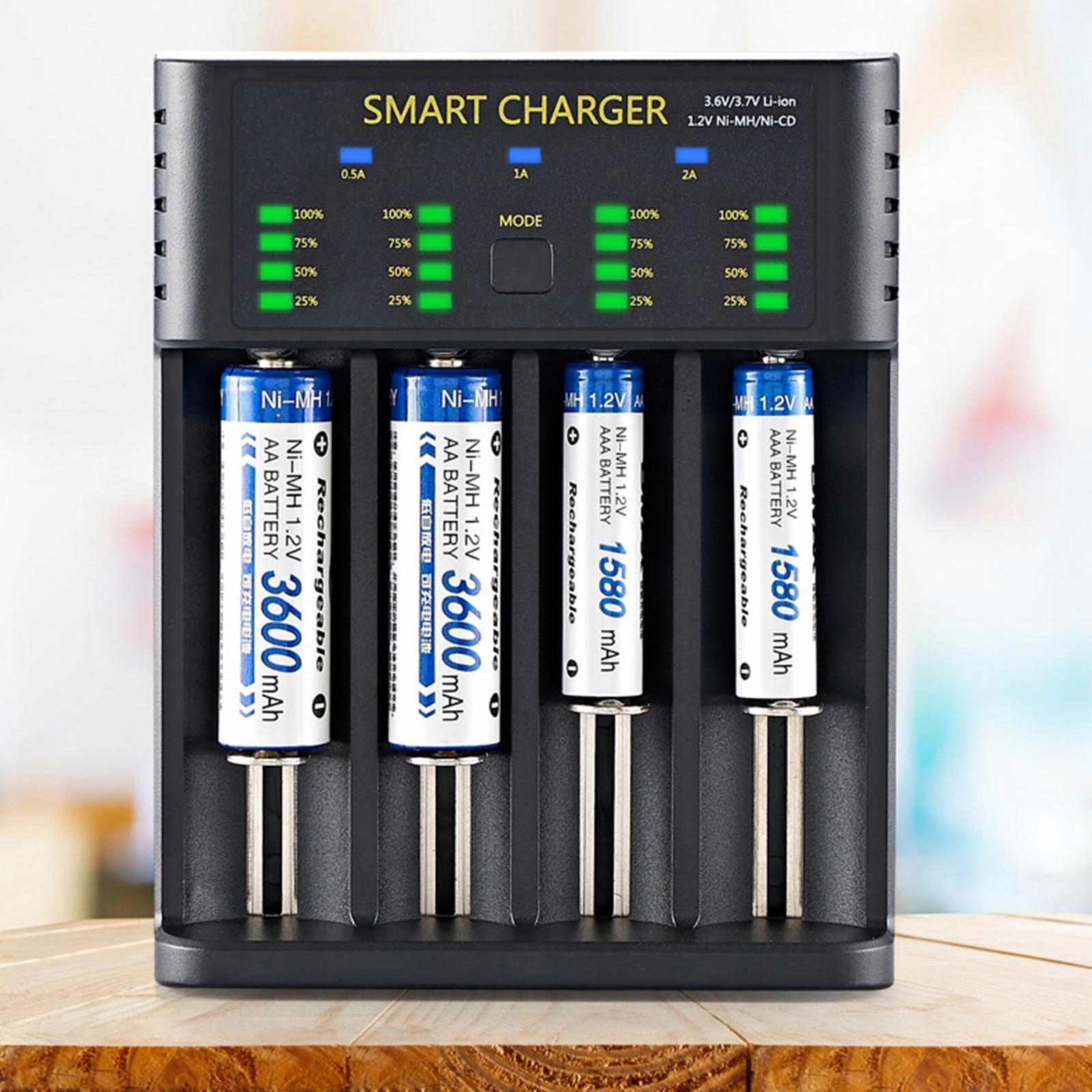 Виготовлений з кабелю USB, забезпечуючи тривалий термін роботи. P> Змішана зарядка: зарядний пристрій має 4 розетки та працює незалежно. У той же час він може поставити кілька літій-іонних батарей та акумуляторів Ni-MH. /22650/25500/26650/IMR/INR/ICR/NCR/NI-MH/AA/AAA/Кондиціонер/SC/F6.
