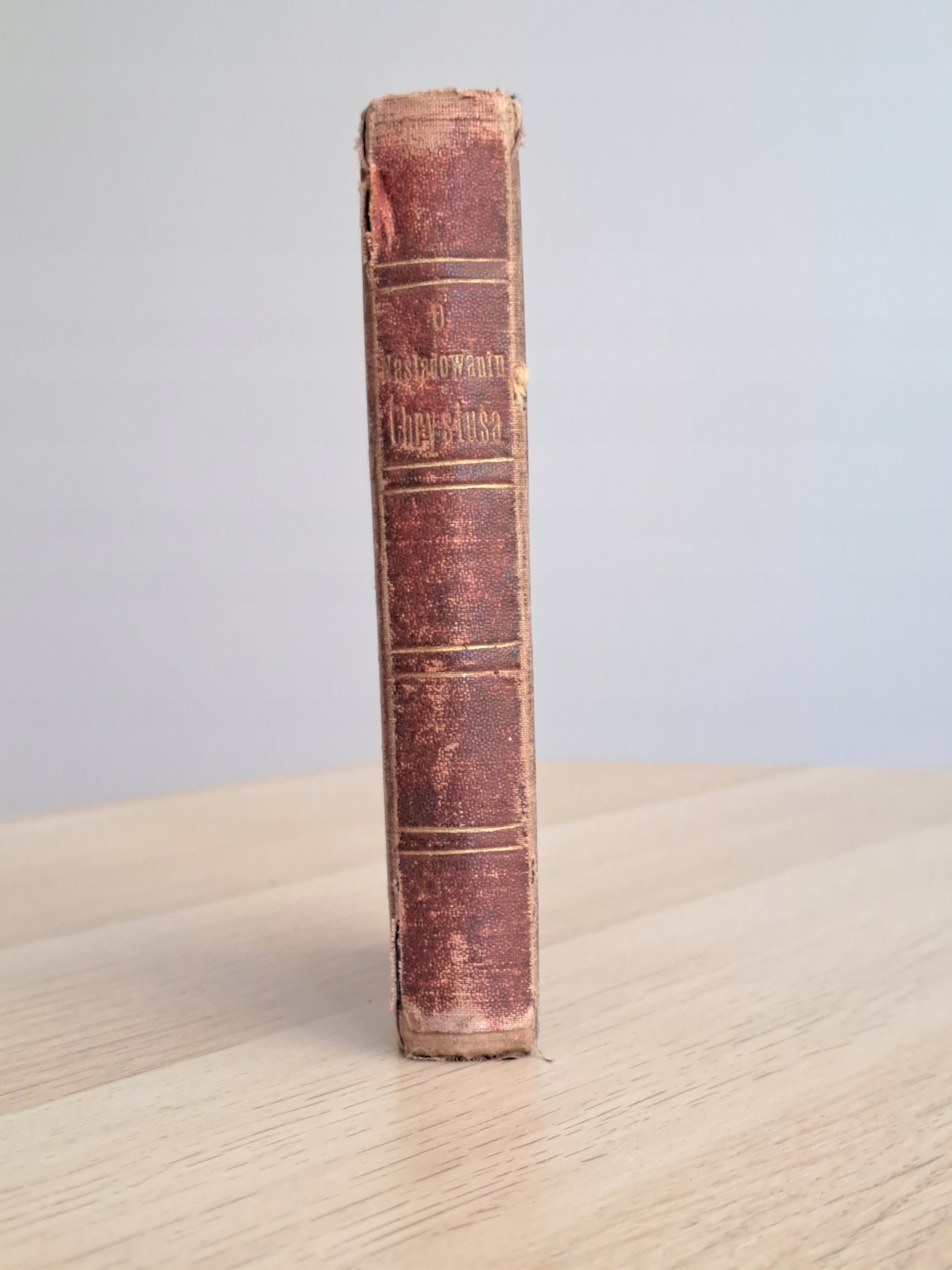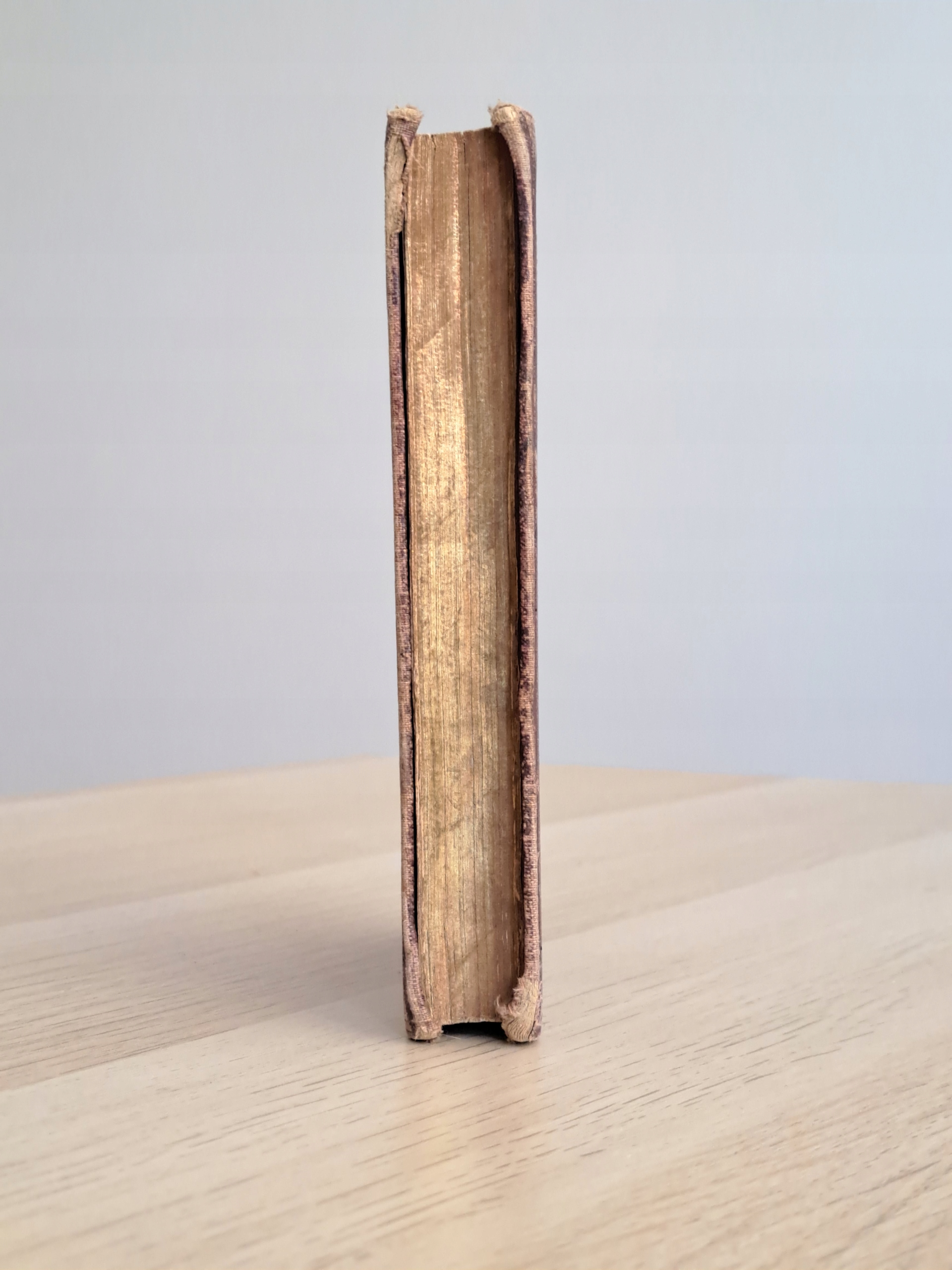 Стан: хороший. Послідовний книжковий блок. Сторінки мають зміну кольору, характерну для віку книги. Кілька сторінок мають ознаки затоплення. Новий форзац передньої палітурки. На передтитульному аркуші анотація з датою 1892 р. Кути палітурки потерті. Сторінки позолочені.