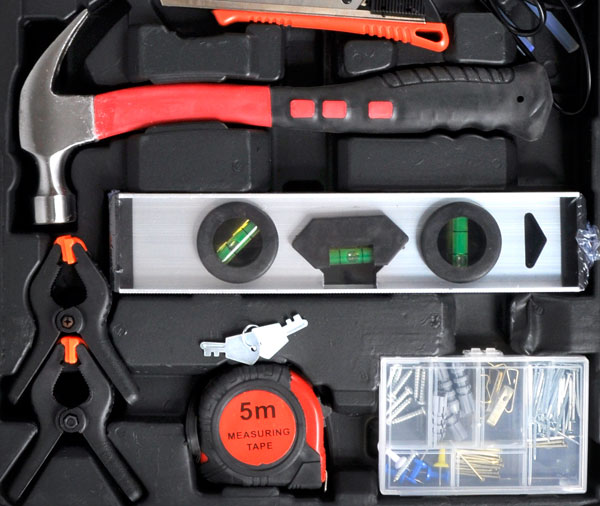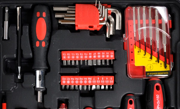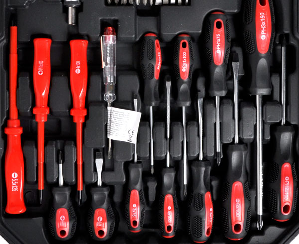 Цей багатий набір інструментів упакований у практичну валізу.