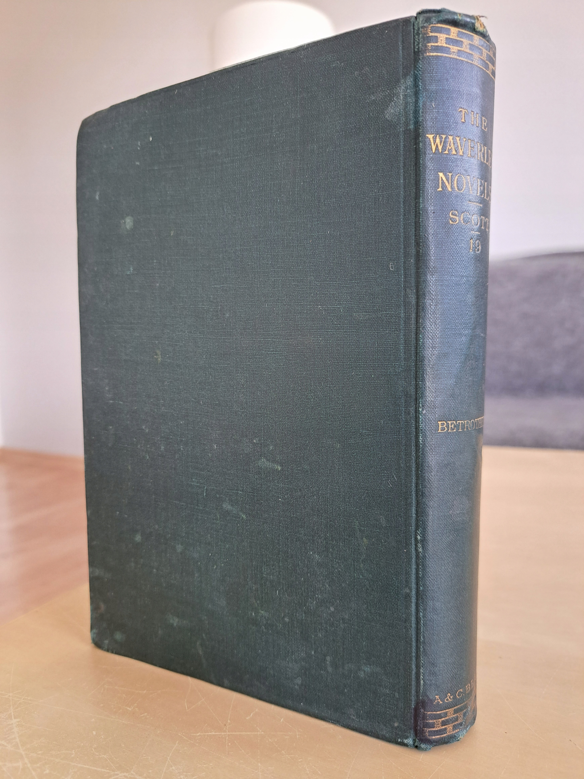Романи Веверлі. Том XIX. Послідовний книжковий блок. Сторінки знебарвлені з віком. На внутрішній стороні передньої палітурки власноручний підпис із датою 1898. Видання англійською мовою.