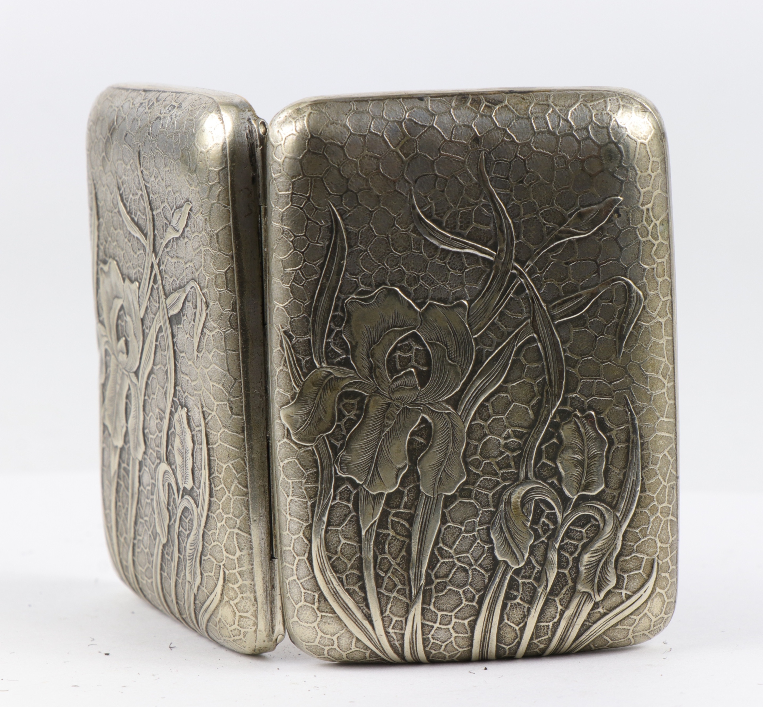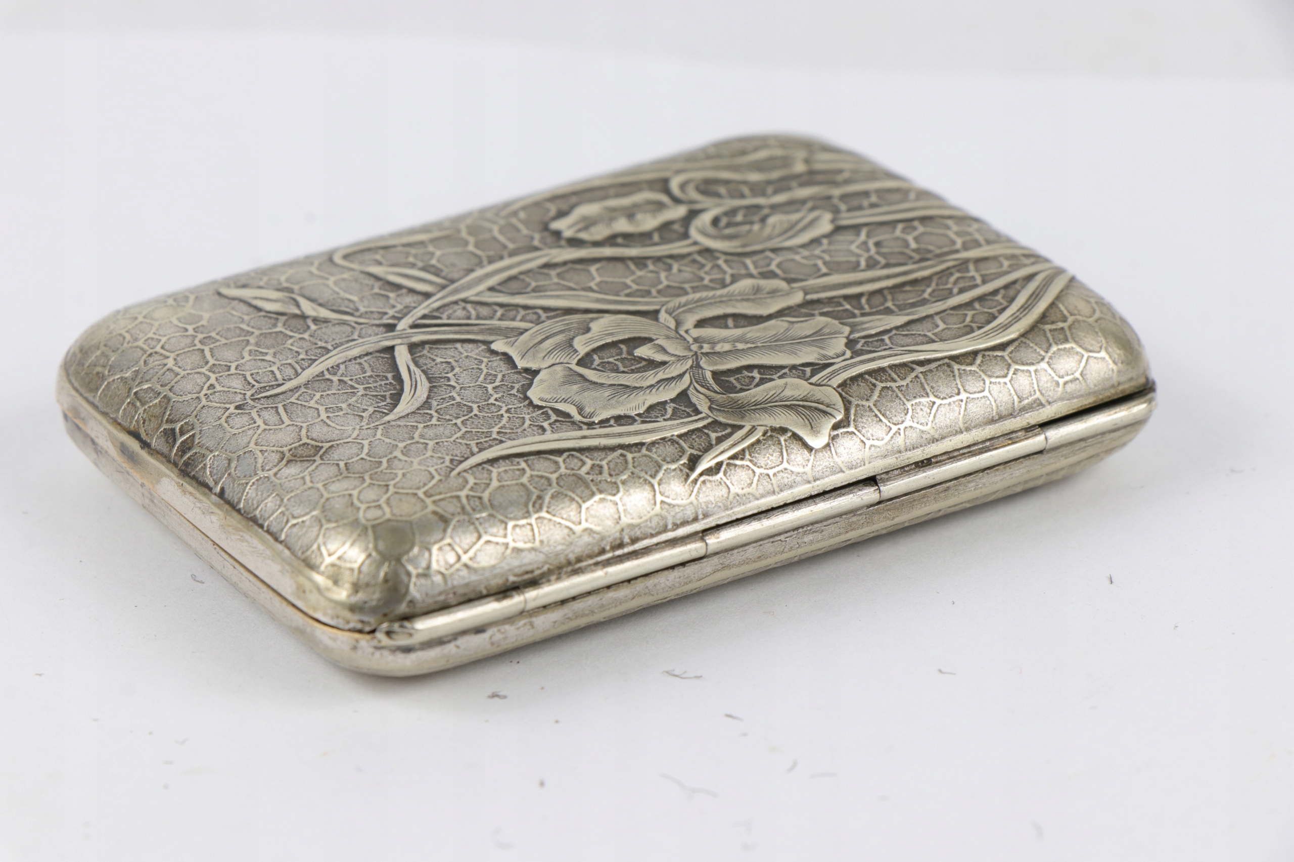 Портсигар у стилі модерн, прикрашений візерунком райдужки. Портсигар з посрібленої латуні, всередині позолочений. Він не підписаний.