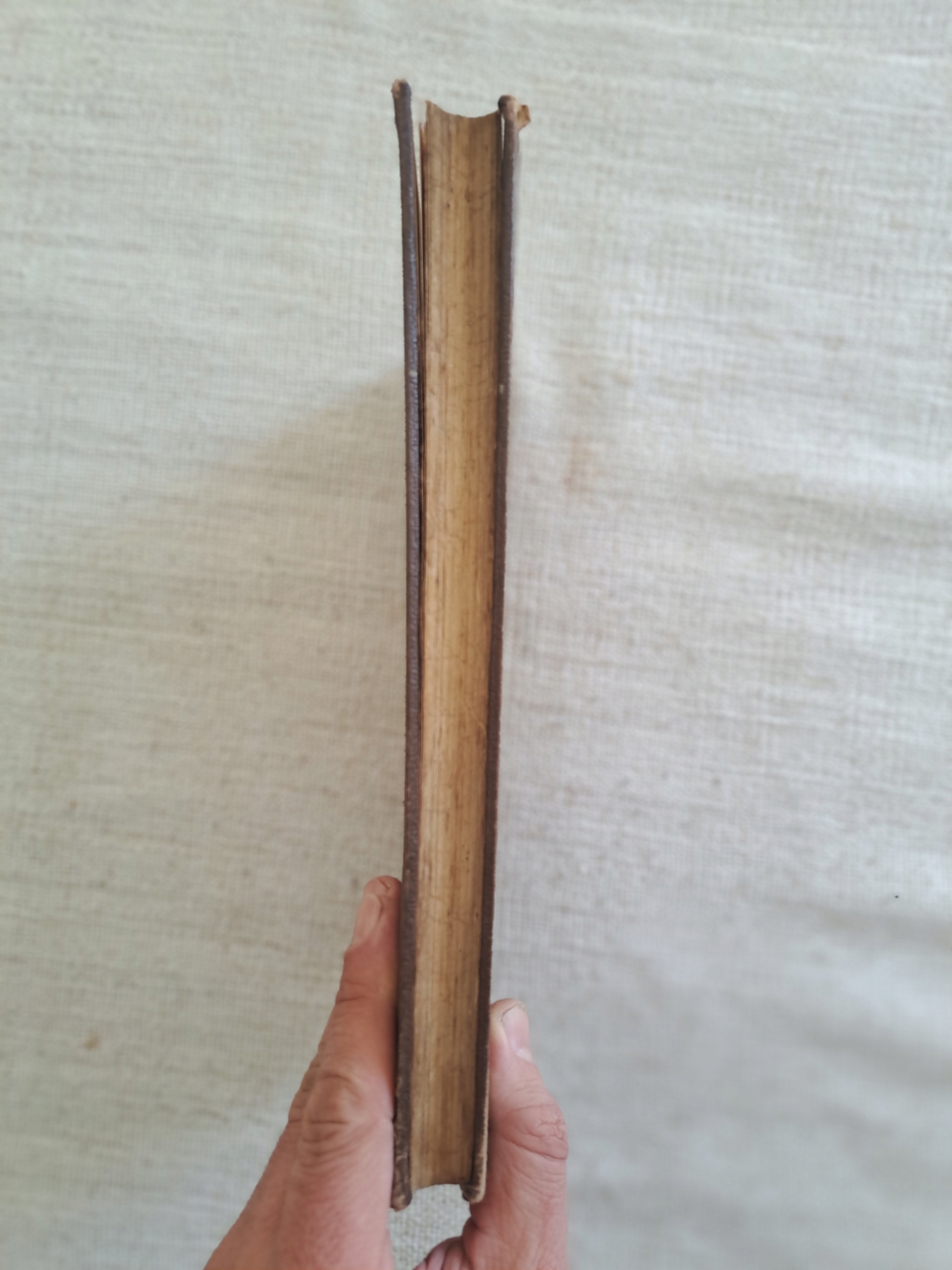 Значення Важко, натиснуто. Блок книги послідовний. Сторінки мають знебарвлення, характерні для віку книги. У книзі є штампи. Пляма на спині.