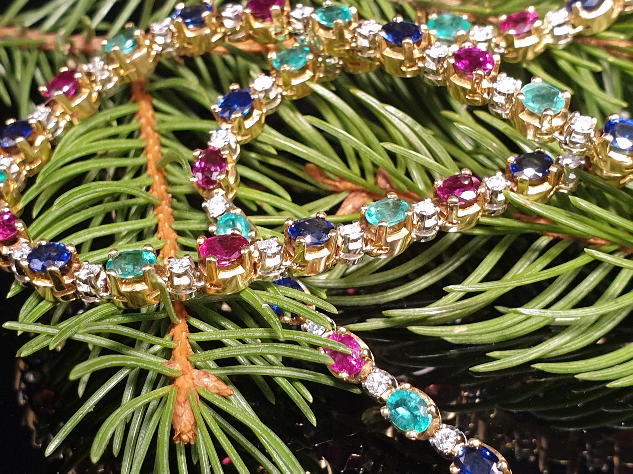 18-каратне намисто з діамантами, смарагдами, сапфірами та рубінами