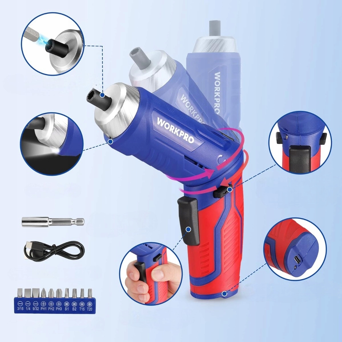 Набір інструментів WORKPRO з 18 предметів і акумуляторна викрутка 3,7 В USB C