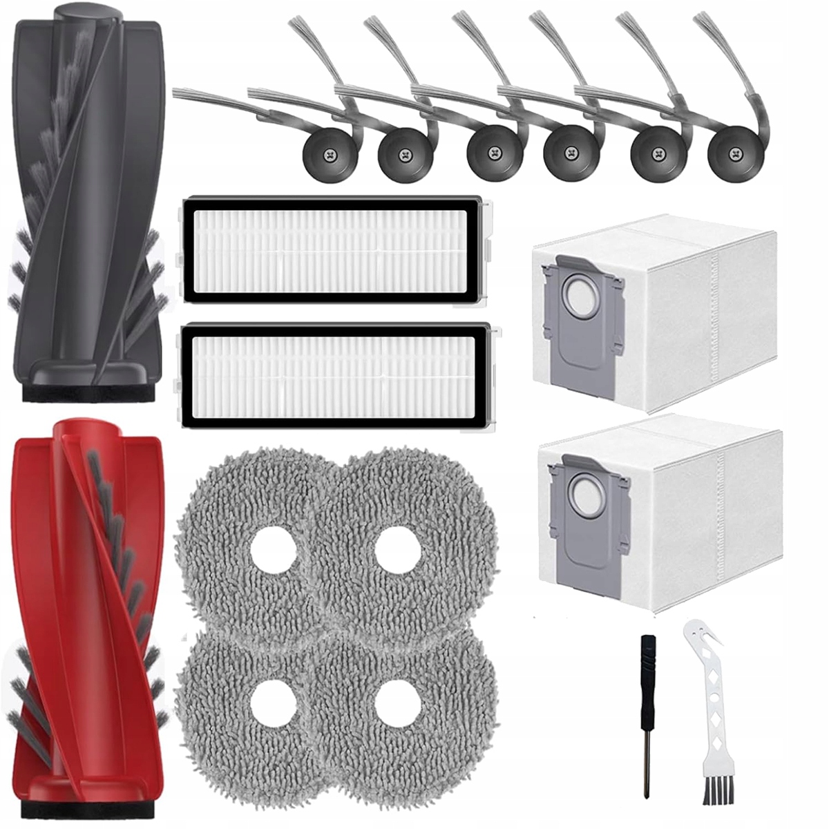 Набір з 18 запасних частин для пилососа для кривої Qrevo Curv/ Qrevo для вакуумного очищувача RoboRock Qrevo, 1 пара основних пензлів, 6 бічних пензлів, 2 фільтри, 4 ганчірки, 2 пакетики пилу, 1 пензля, 1 викрутка