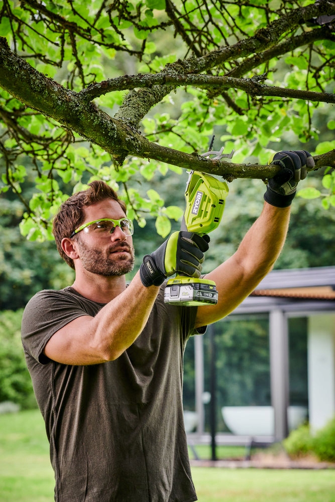 Акумуляторна садова пила Ryobi 5133004594 RY18PSA-0 - це інструмент із категорії шабельних пилок, збагачений спеціальними губками, які дозволяють зручно обрізати гілки дерев та великі кущі. Щелепи можна затиснути на гілці або вперти в гілку, що дозволяє зберігати стабільне положення під час різання. Для живлення пилки потрібен літій-іонний акумулятор 18 В ONE+. Пристрій має компактну та легку конструкцію, тому зручно лежить у руці. Він стане практичним доповненням до інших садових інструментів Ryobi із бездротової серії ONE+.