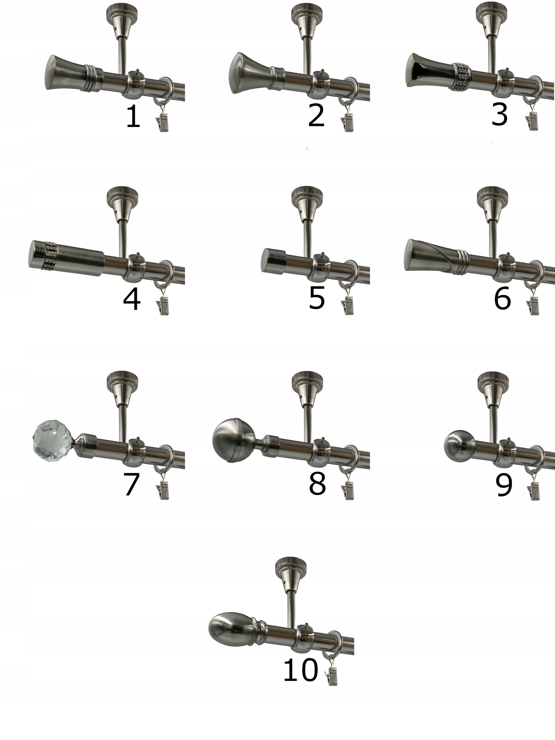 На цьому аукціоні ви купуєте повноцінний металевий каррон однієї стелі з діаметром 19 мм трубки в кольорі нікелю з довжиною 240 см із вибраним наконечником. Продукти