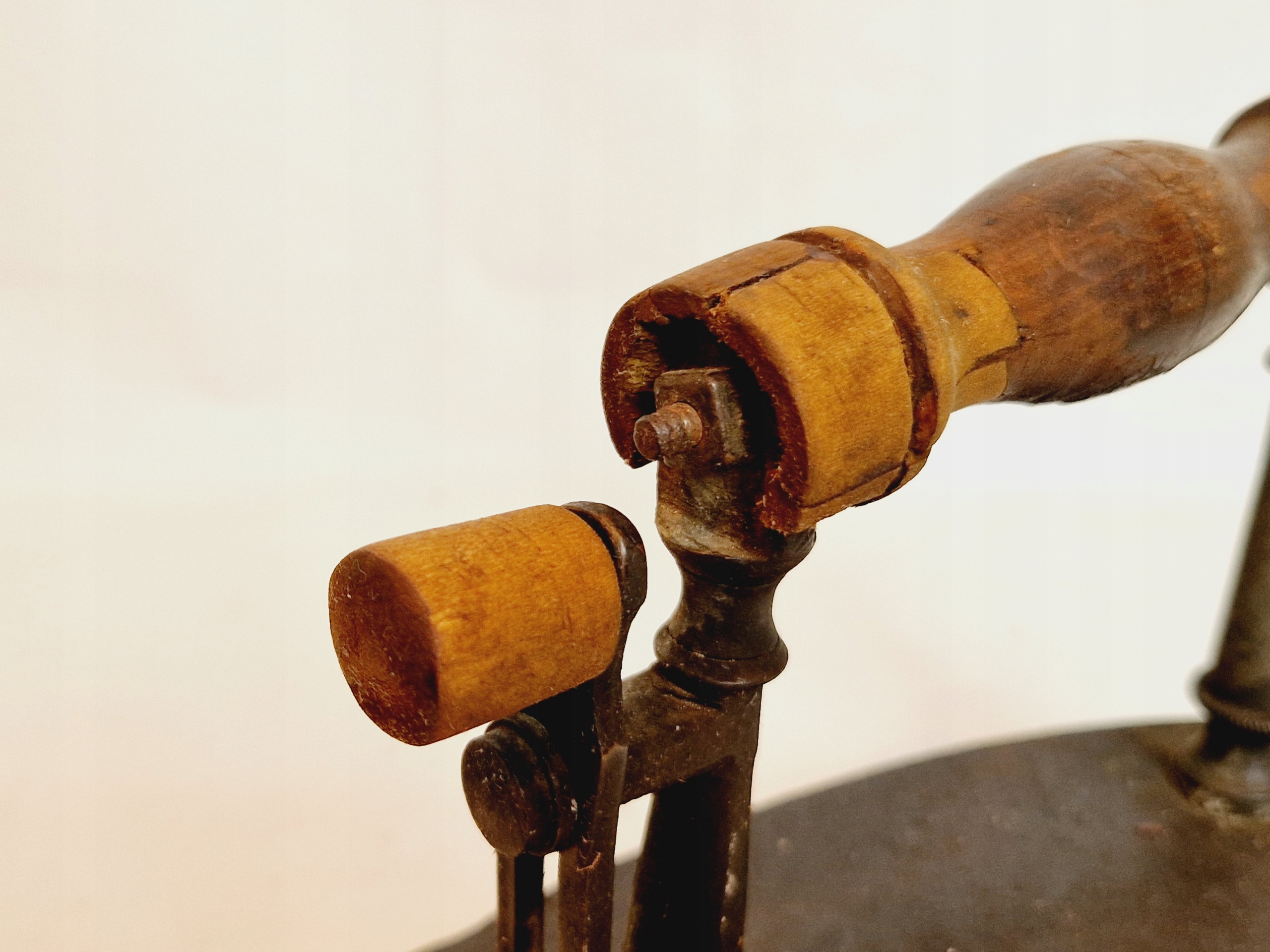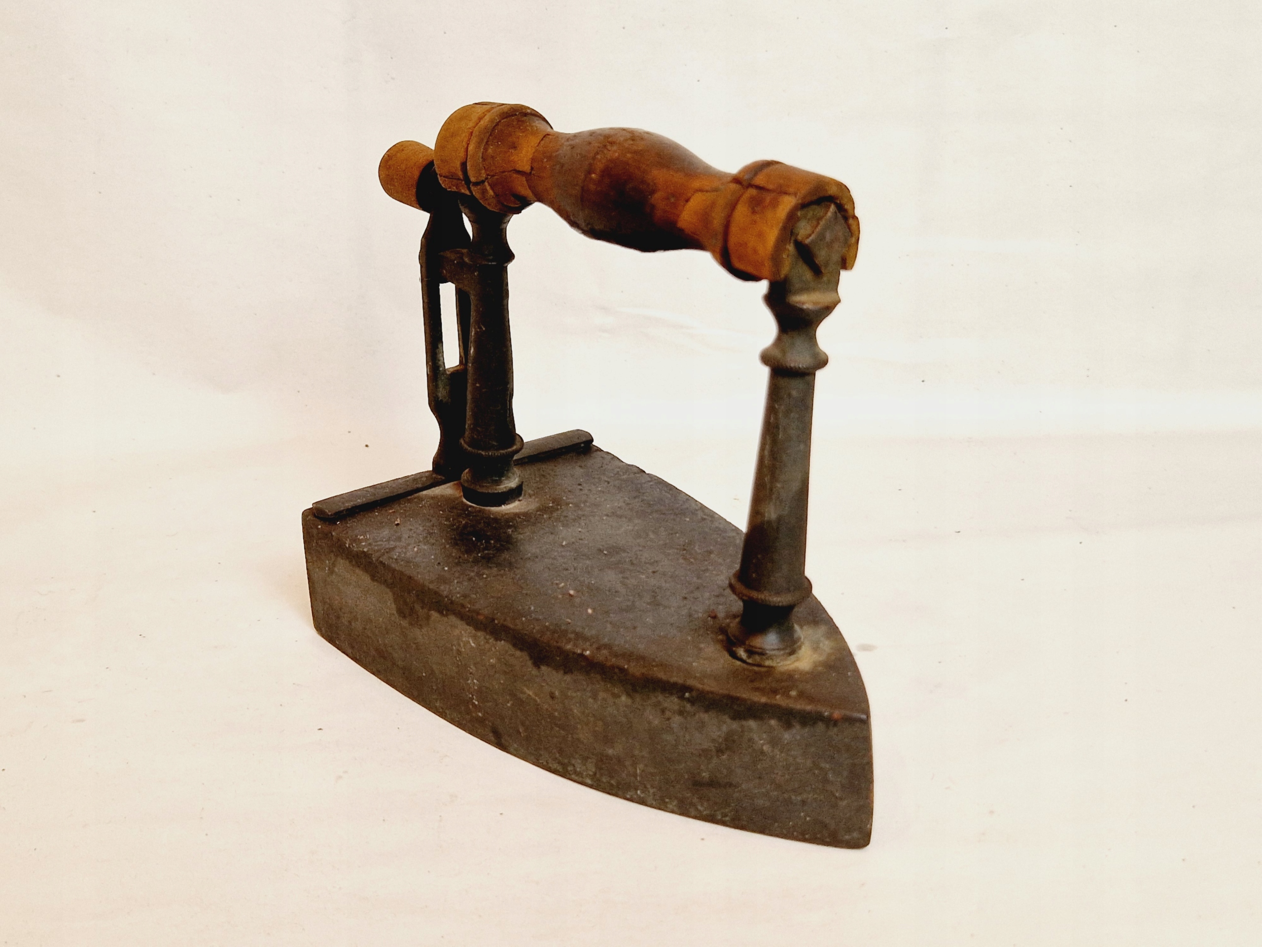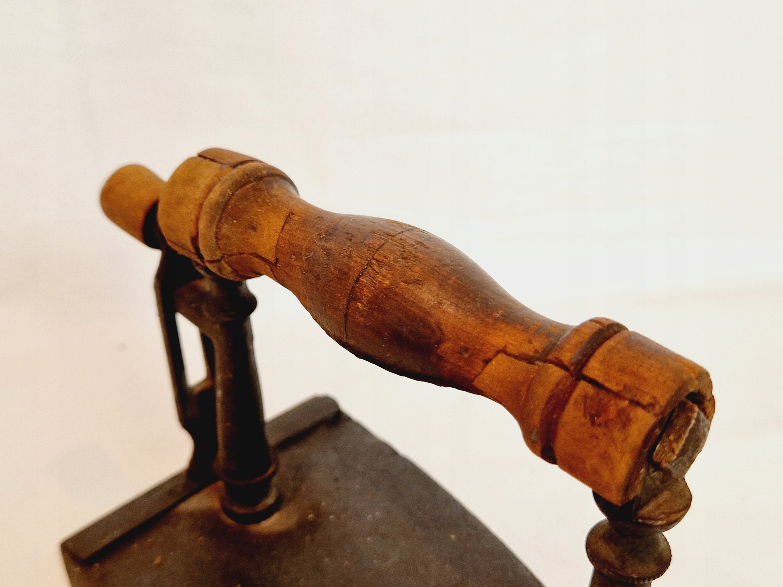 Дерев'яна ручка праски з невеликими тріщинами - пошкодження без шкоди для стійкості ручки.