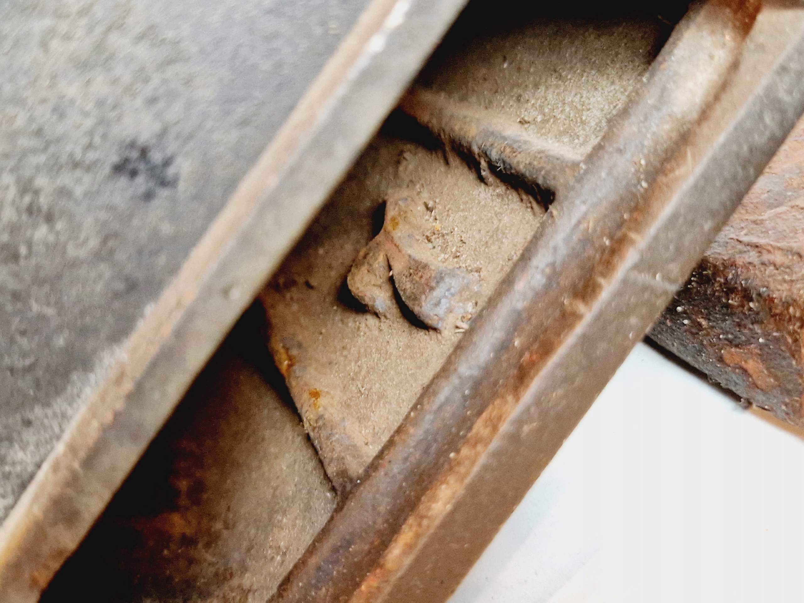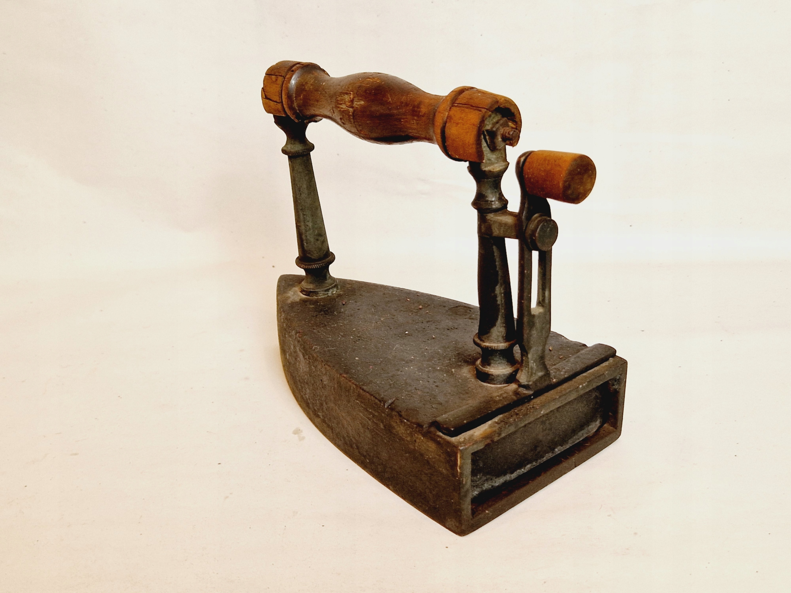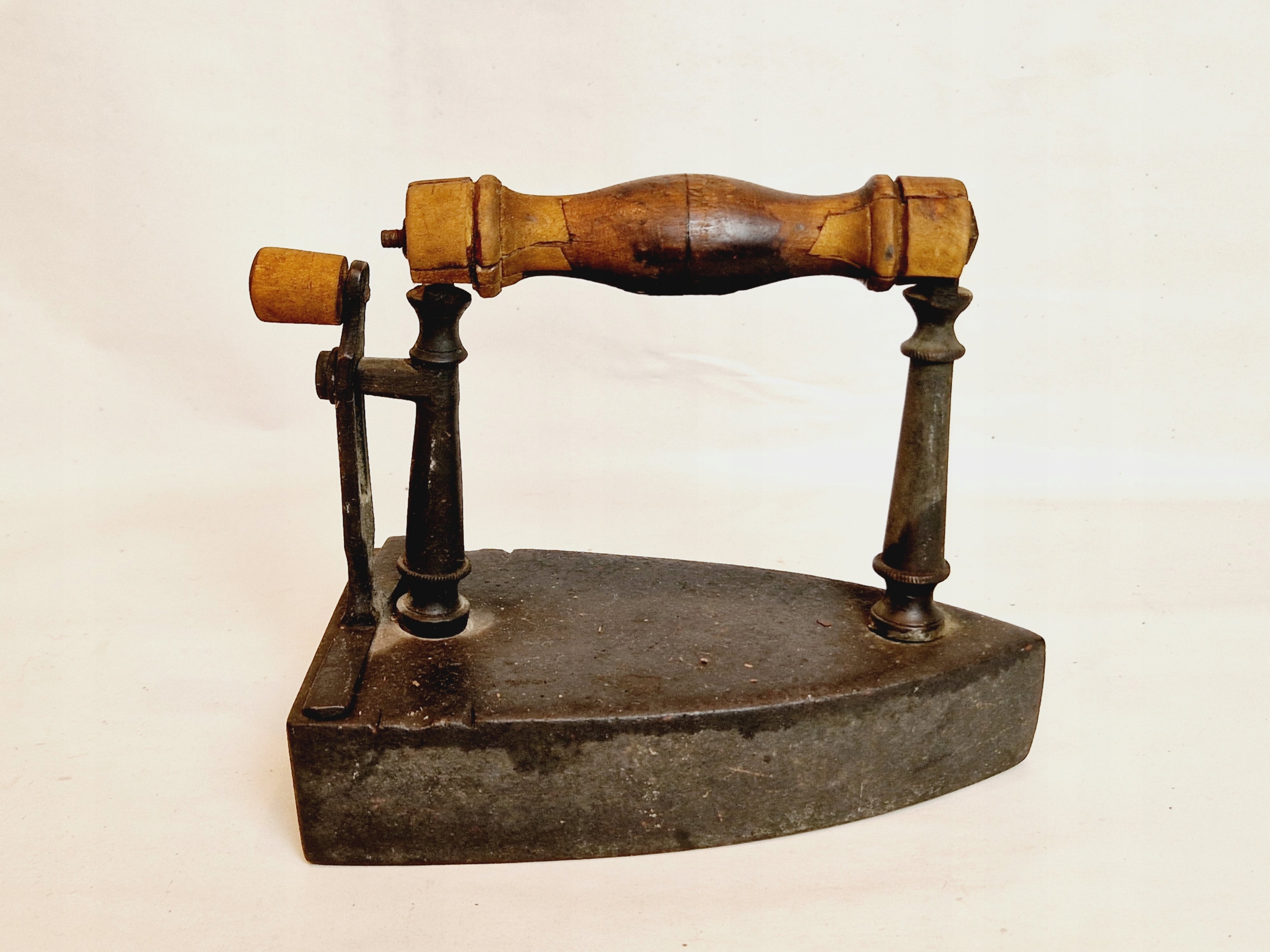 Дерев'яна ручка праски з невеликими тріщинами - пошкодження без шкоди для стійкості ручки.