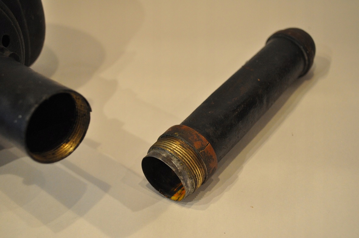 Лампа, ймовірно, була перероблена на "електричну" в минулому - отвір у нижній частині щогли та кришка "свічкового патрона" відсутні.