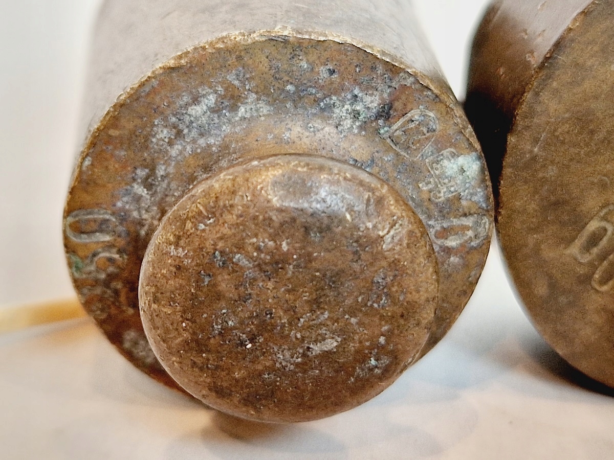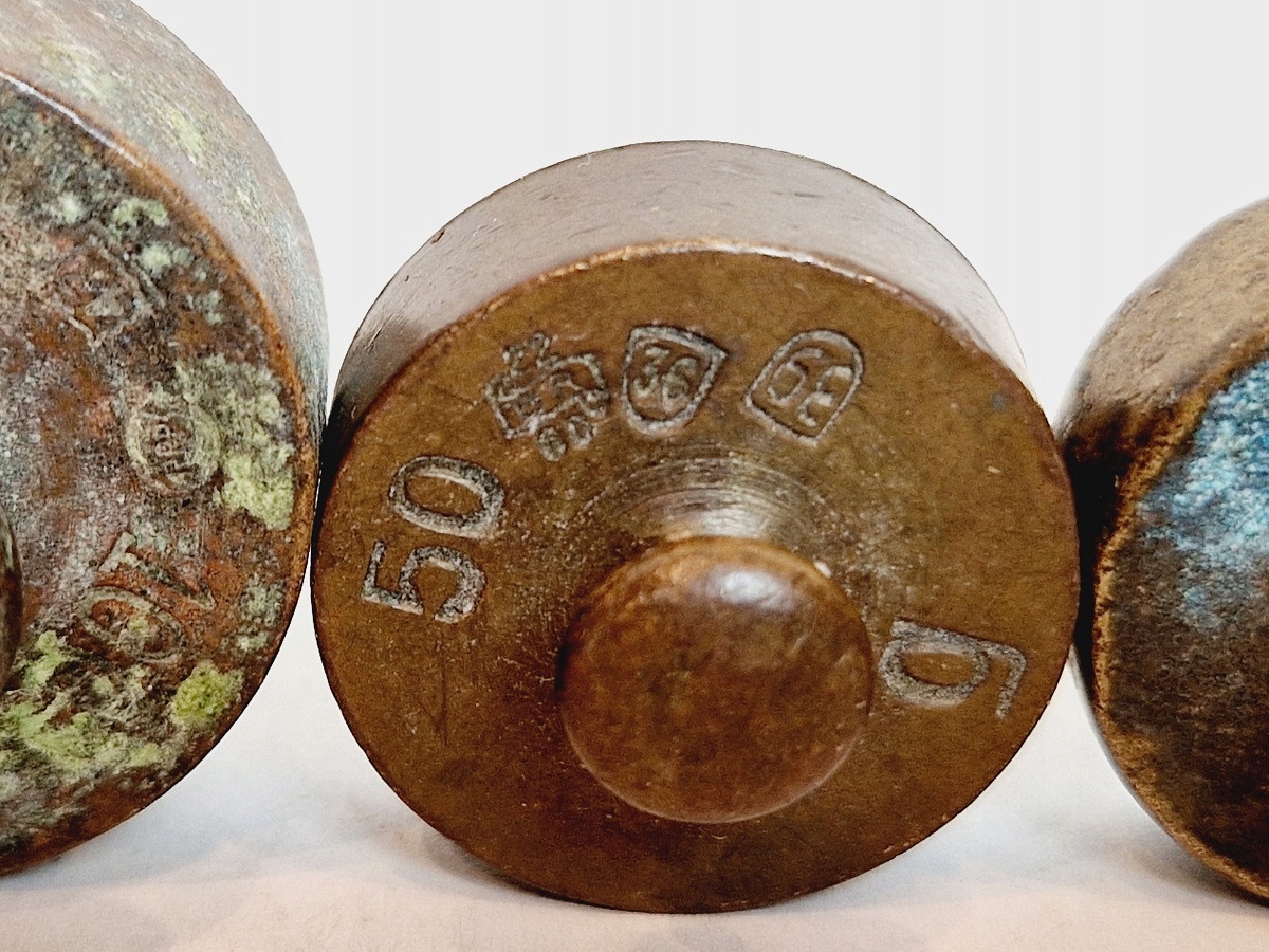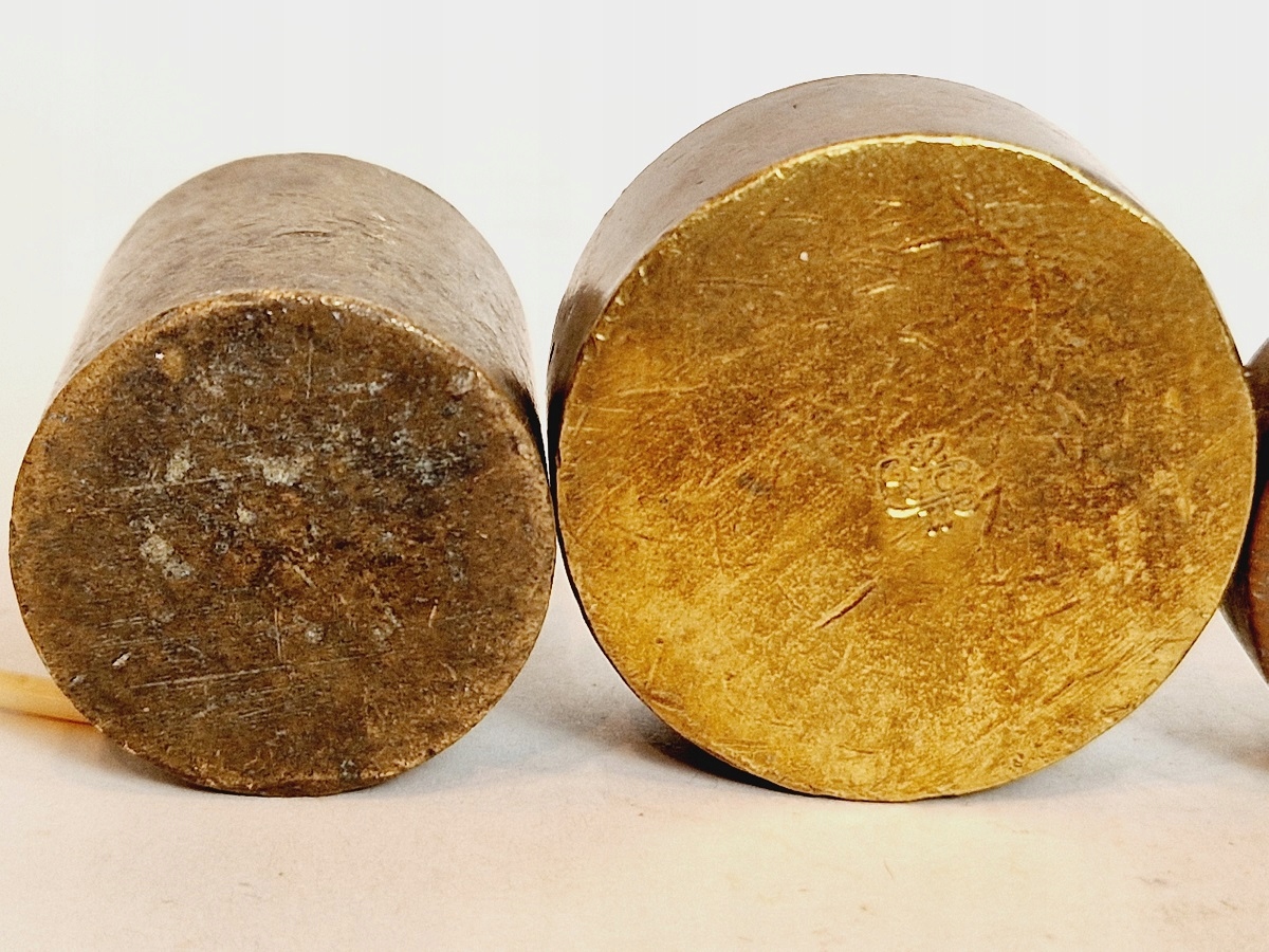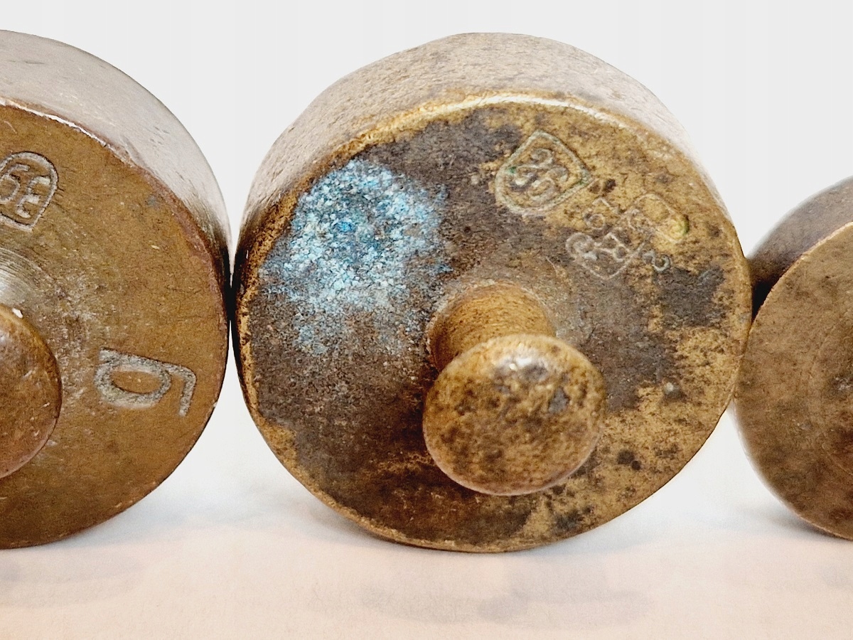 гирі не чистили - вони вкриті оригінальною, старою, темною патиною.