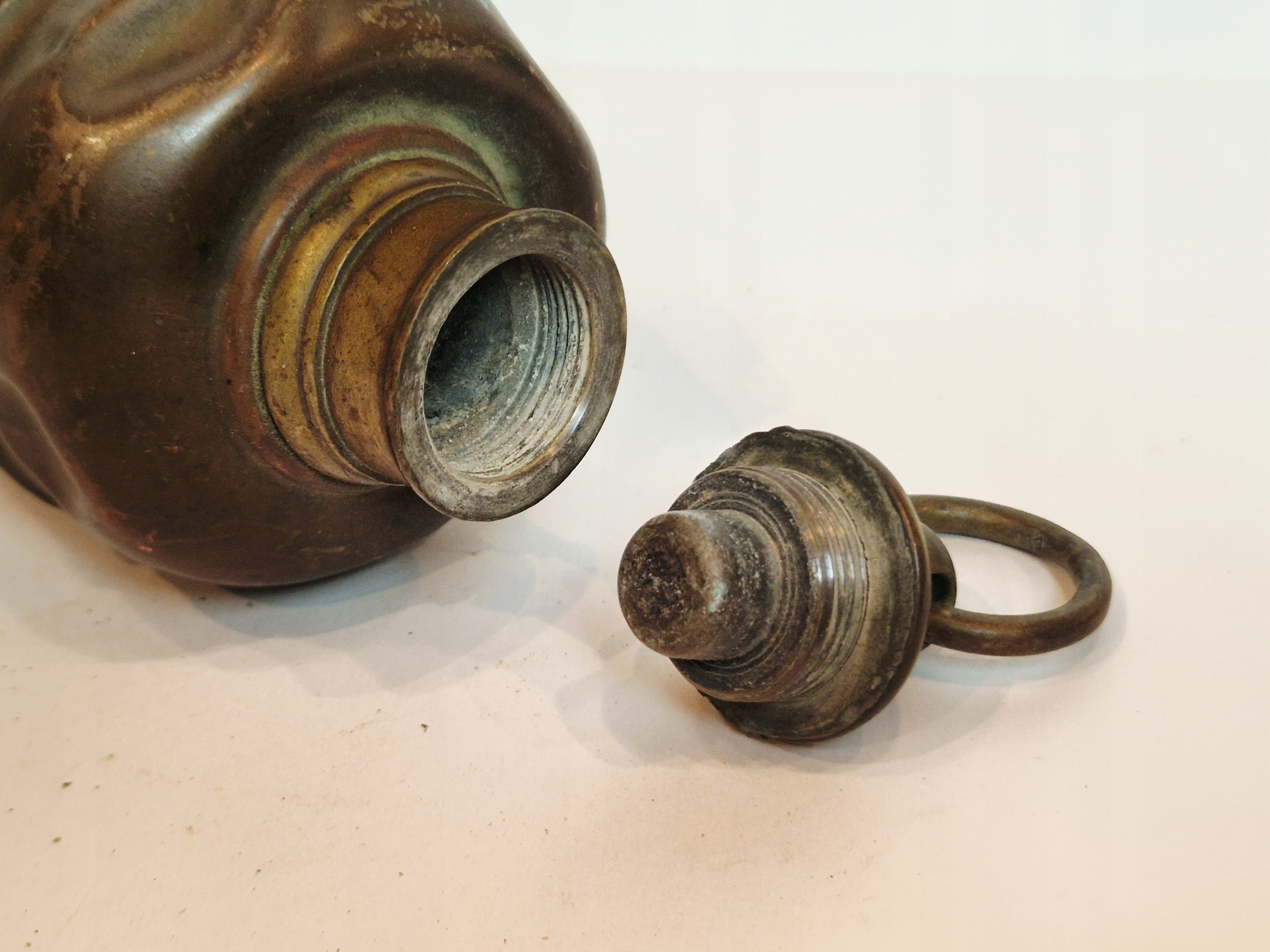 Бронзовий ковпак - з масивним кільцем ручки - без пошкоджень і слідів ремонту - різьби цілий.