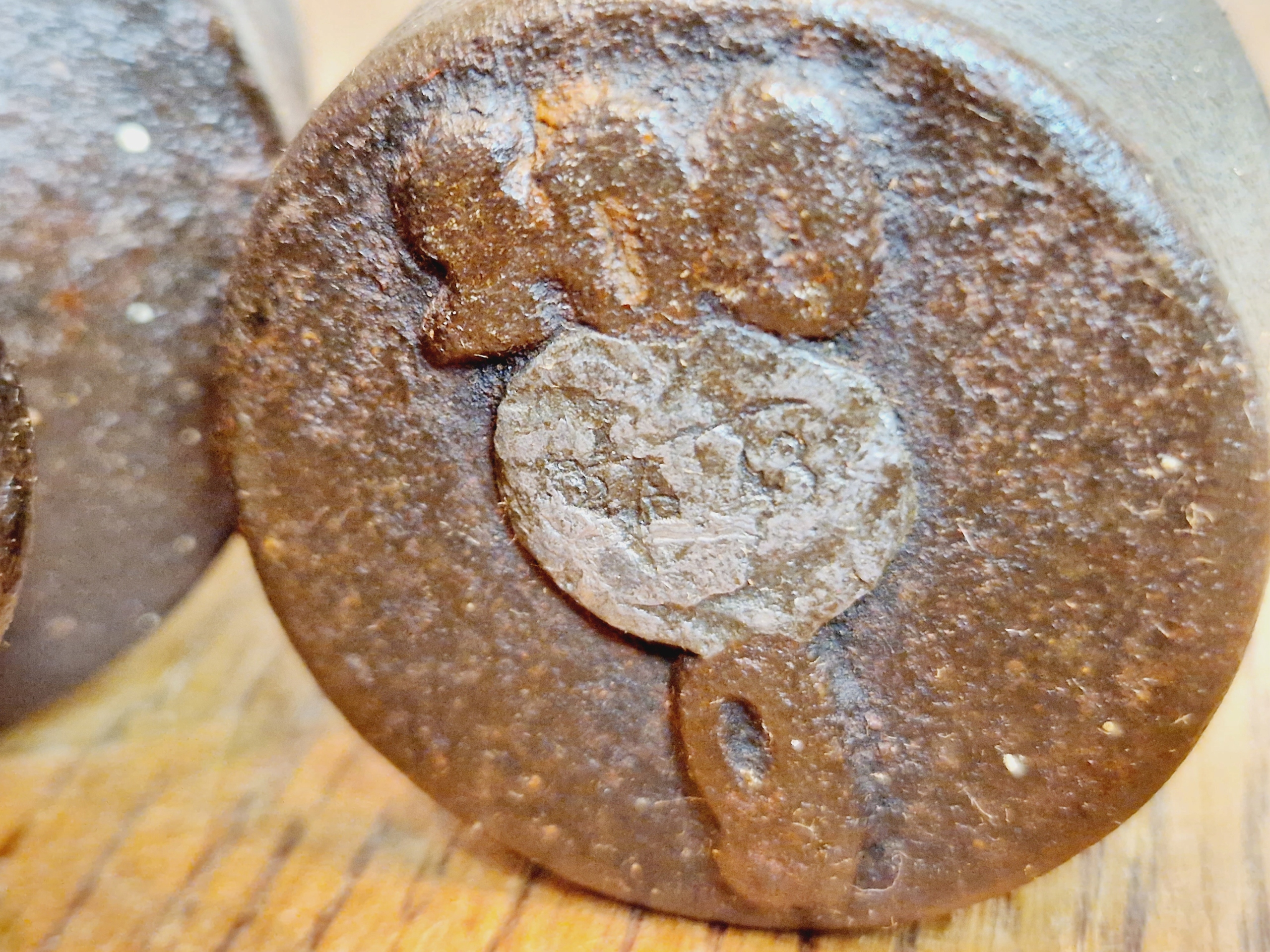 Гніздо для тари вагою «1 кг», опломбовано свинцевою вставкою з німецькими знаками легалізації.