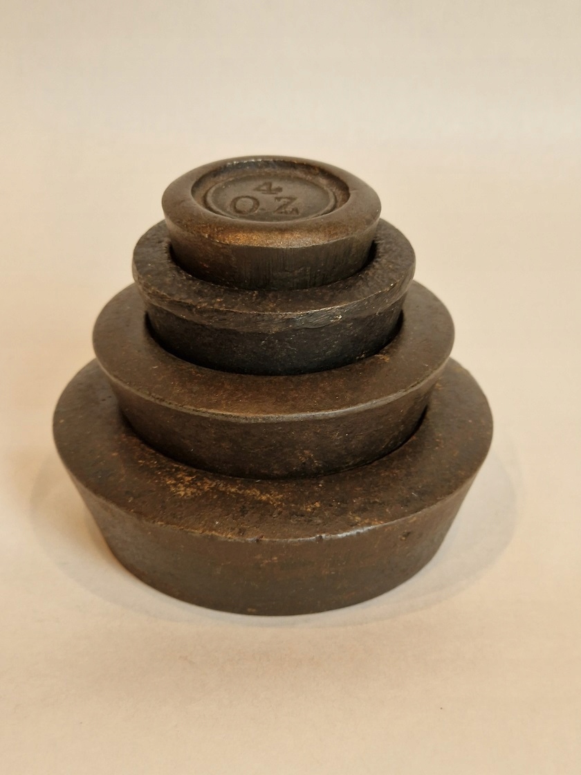 Лицьові сторони (верхня частина) гир позначені номіналами...