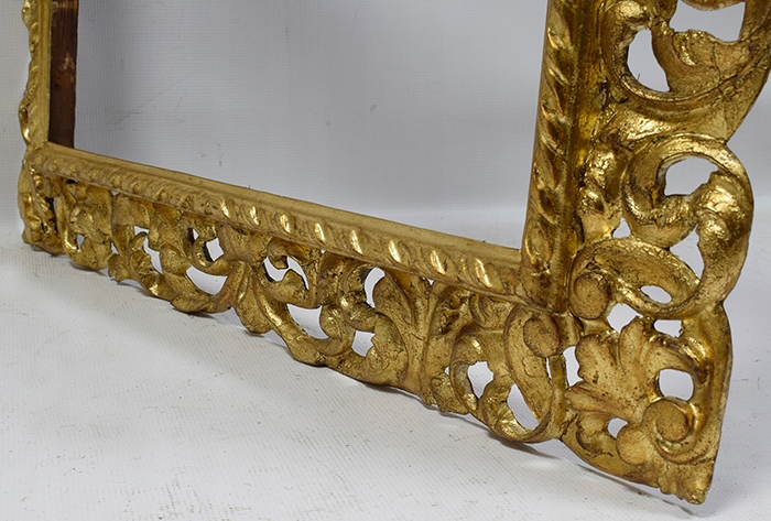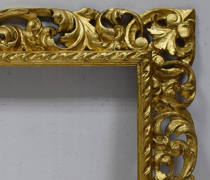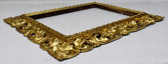 Стара декоративна, ажурна, різьблена дерев'яна рама у флорентійському стилі. Каркас покритий шлагметальними лусками. Візуальний стан рами дуже хороший, це видно на фотографіях нижче.