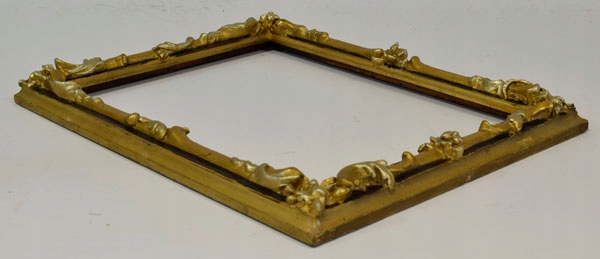 Набір із 2 старих, декоративних дерев’яних рамок, пофарбованих золотом фарба. Візуальний стан рам видно на фотографіях нижче.