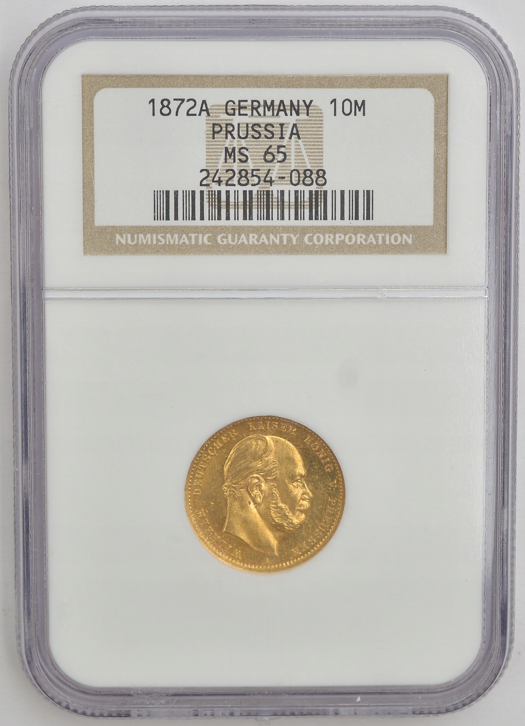 19.db.PRUSY , ВІЛЬГЕЛЬМ I, 10 МАРОК 1872 A NGC MS65