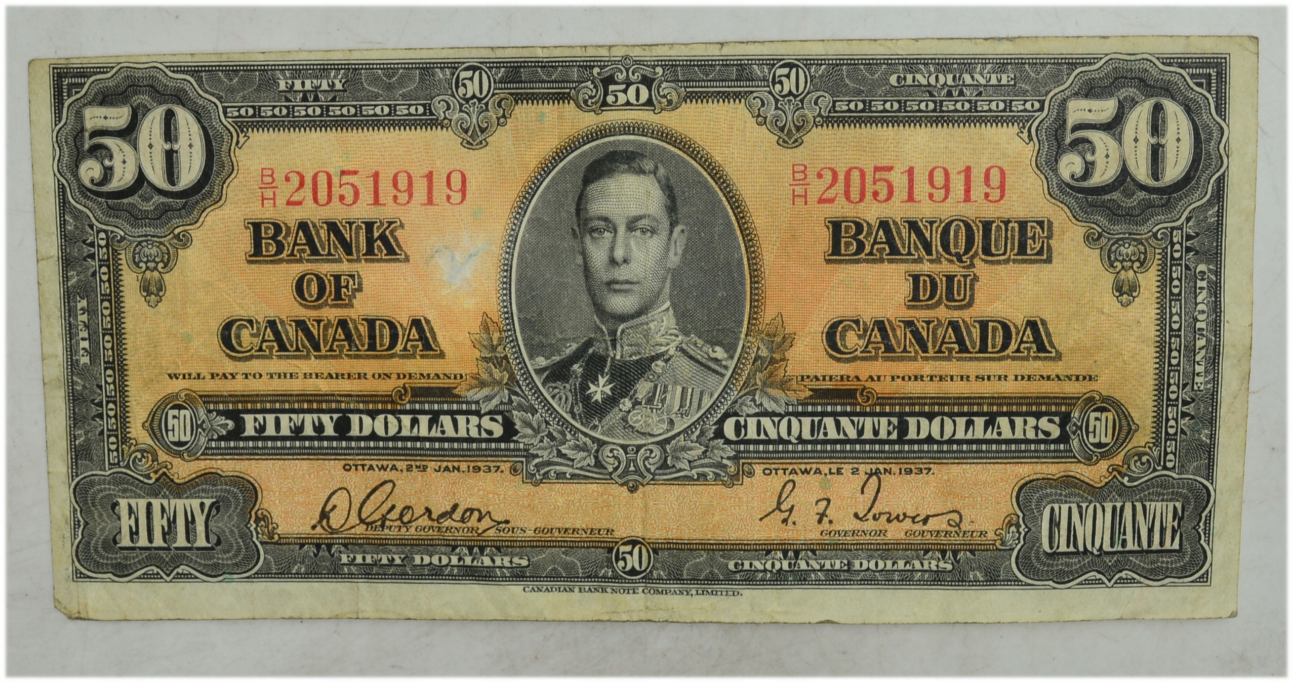19.fu.Canada , $50 1937 рідкісний, St.3+