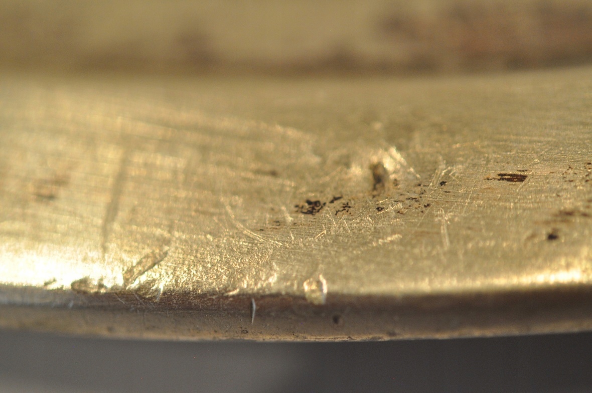 Пласт не очищений і вкритий старою патиною.