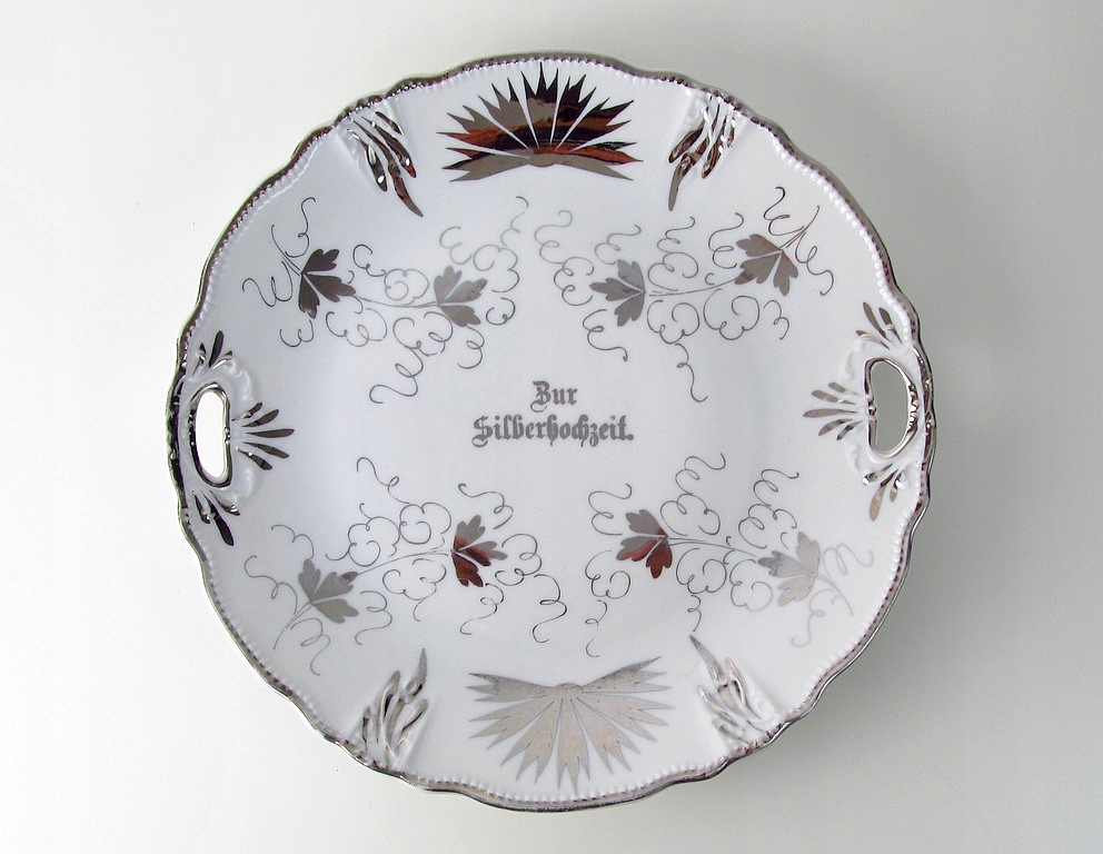 Красива старовинна порцелянова тарілка з ручним розписом і побажаннями німецькою мовою....