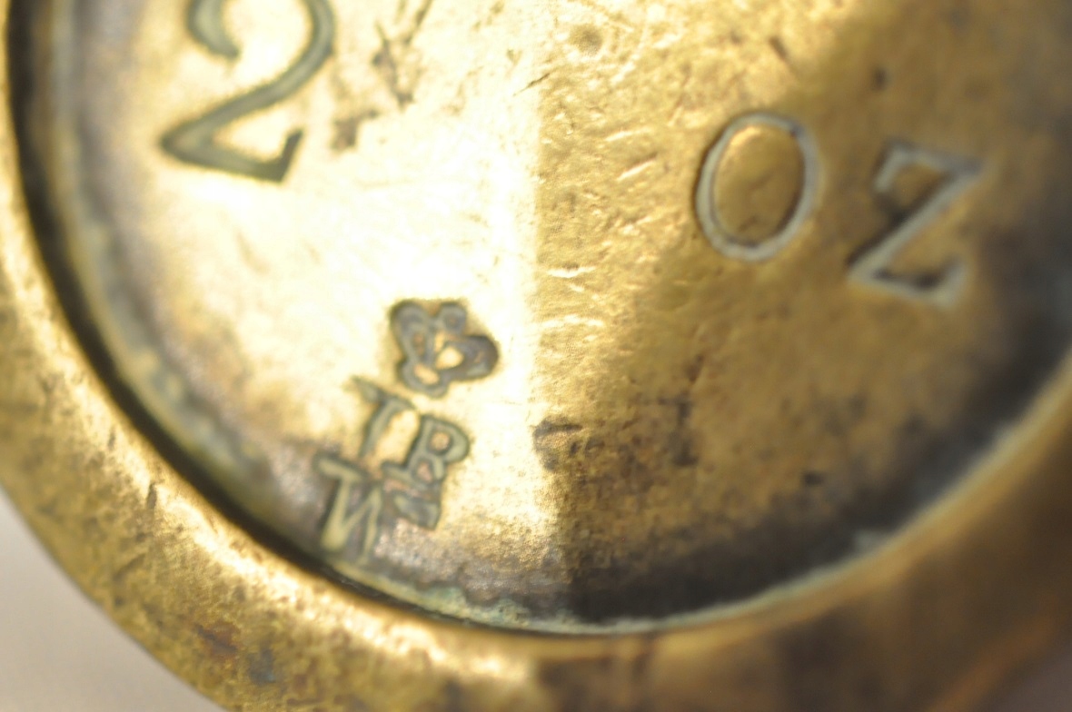 Юридичні підписи на нижній частині гирі вагою 2 унції - на вкладиші для легалізації свинцю: нерозбірливо