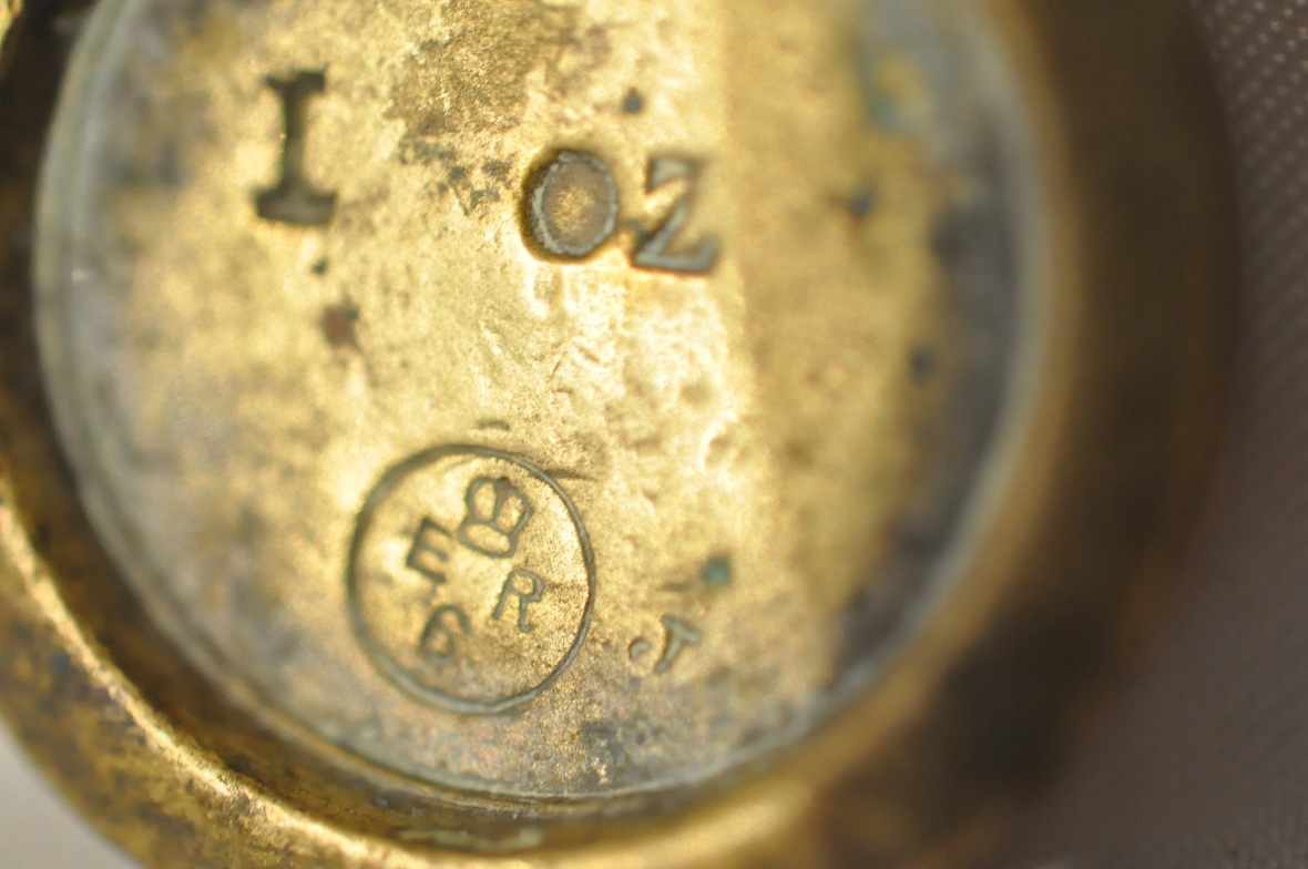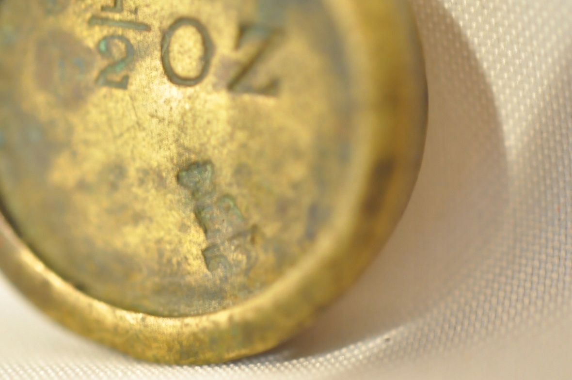 Юридичні підписи на дні гирі вагою 4 унції - на вкладиші для легалізації свинцю: див. фото