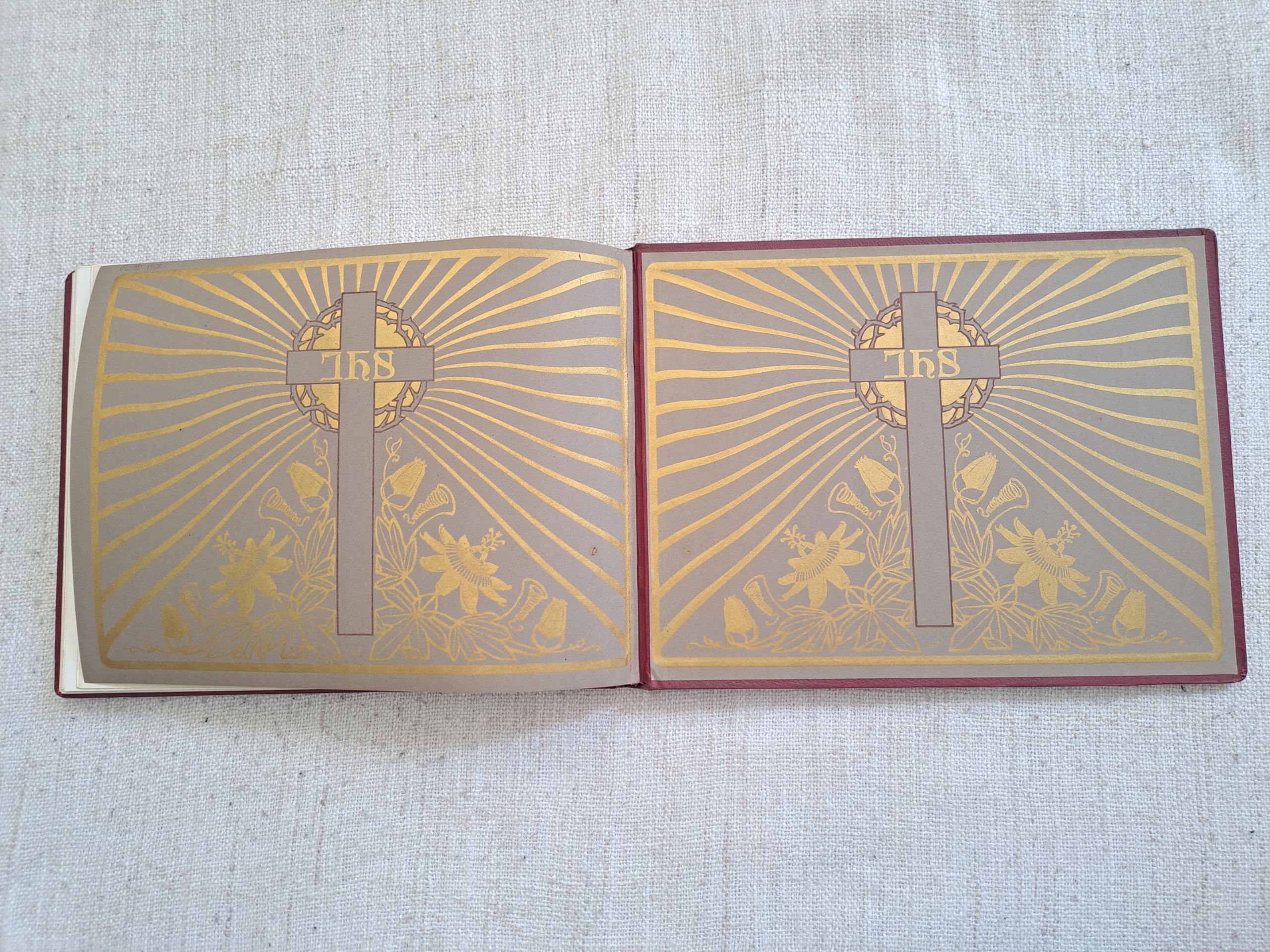 Стан: дуже добрий. Послідовний книжковий блок. Сторінки мають зміну кольору, характерну для віку книги. На сторінках є штампи. Сторінки позолочені. Видання німецькою мовою.