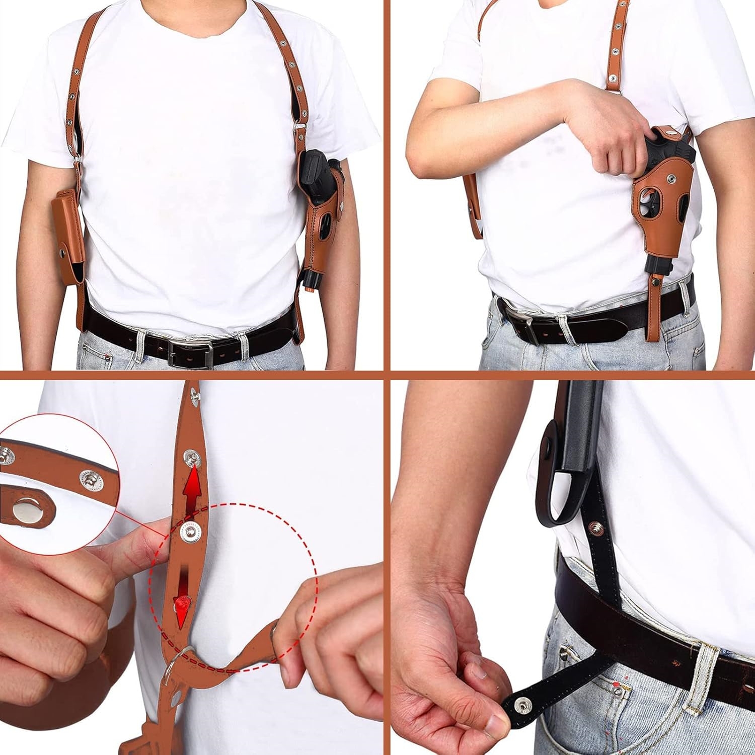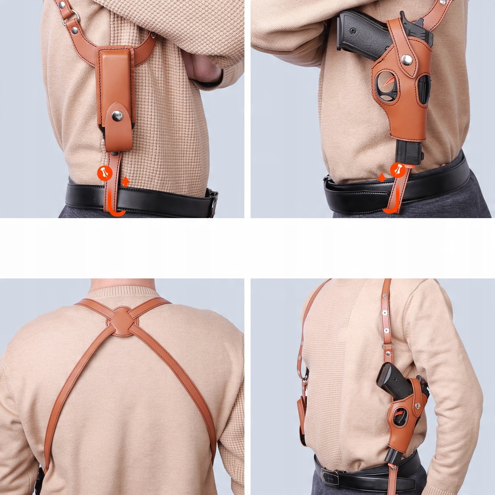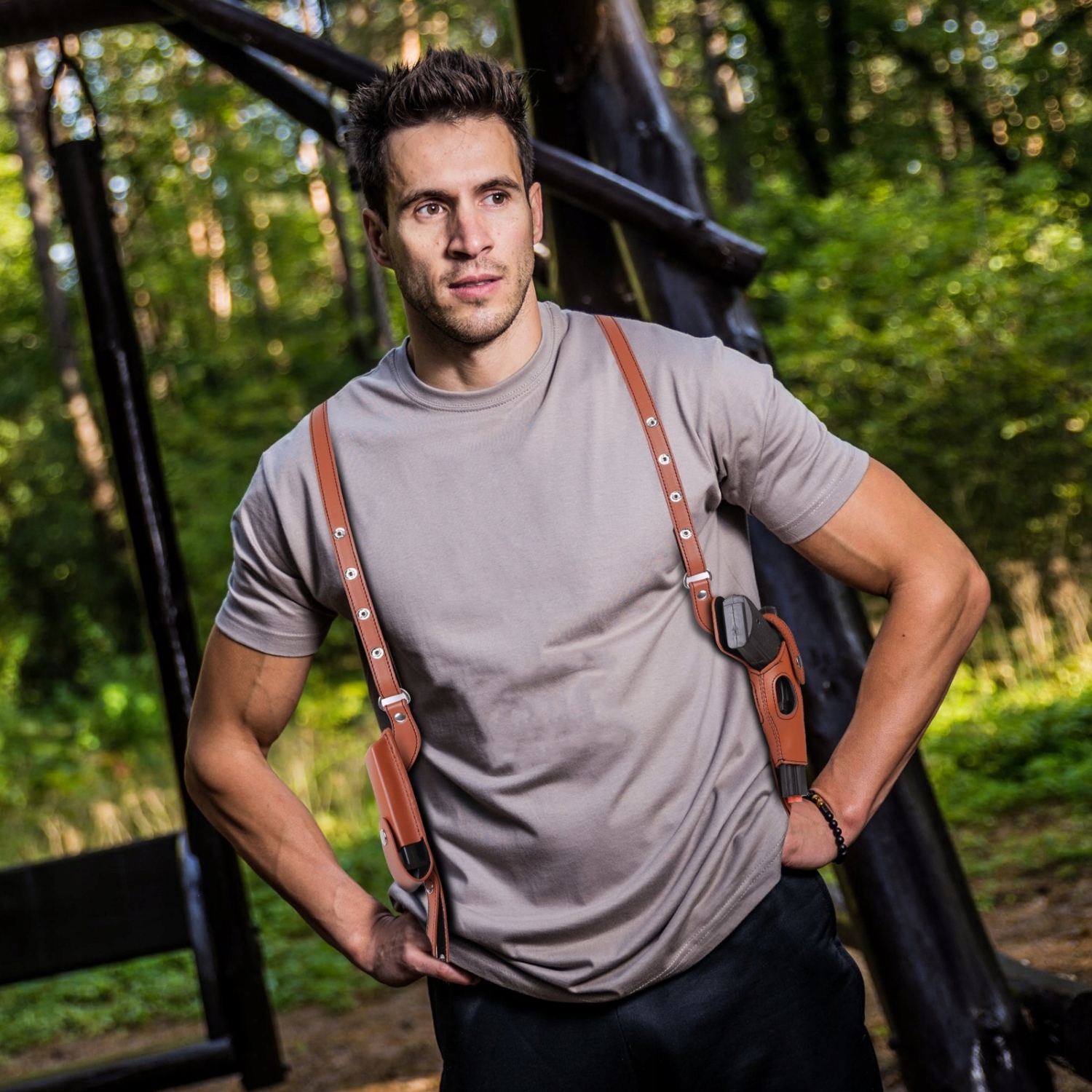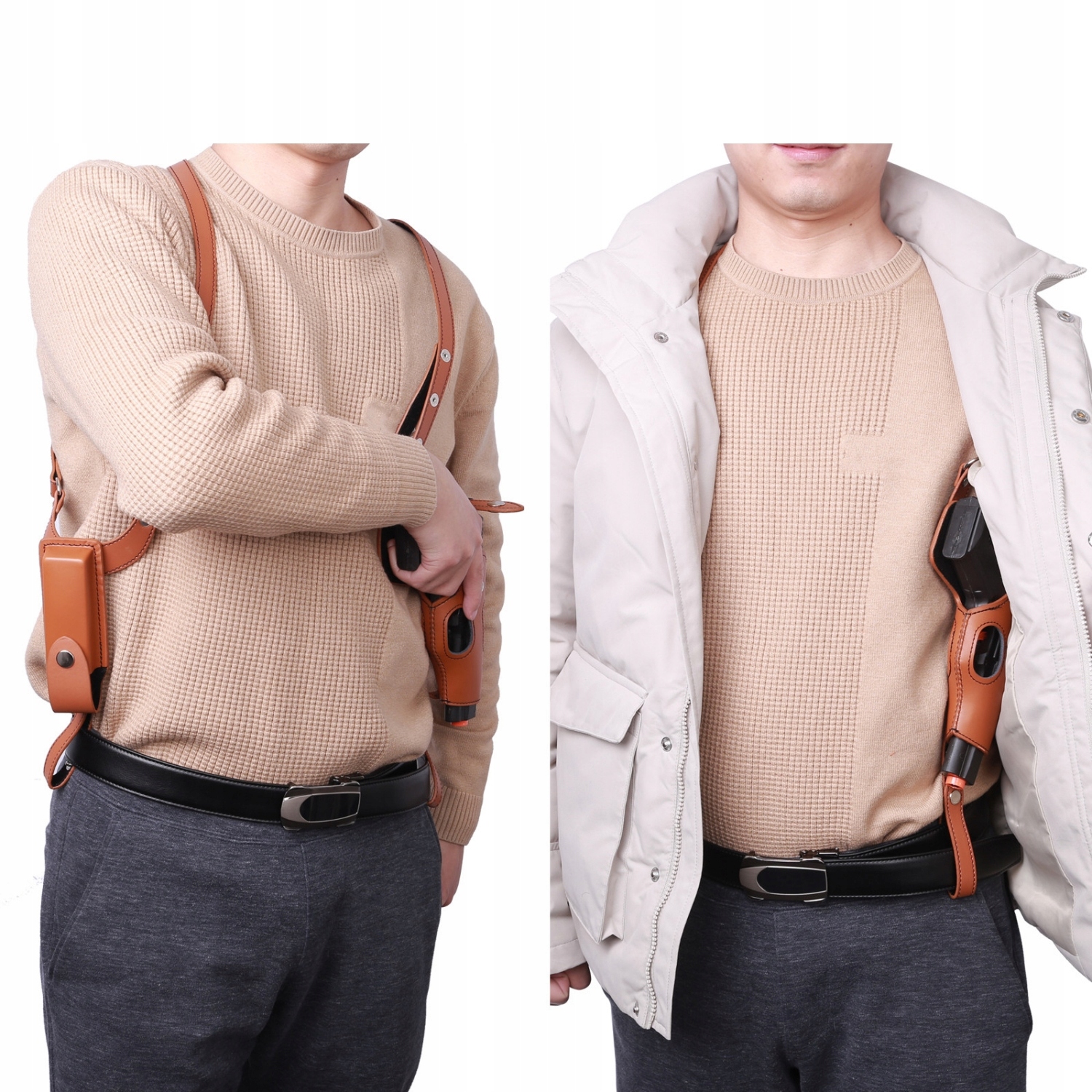 ПЛЕЧОВА КОБУРА, ВЕРТИКАЛЬНА КОБУРА ДЛЯ БІЛЬШОСТІ ТИПІВ ЗБРОЇ. ШКІРЯНА ПЛЕЧОВА КОБУРА ПІДХОДИТЬ ДЛЯ GLOCK 17, 22, 31, SAUER P220, P226, P227 ТА ПОВНОРОЗМІРНОЇ СТРОЙКИ 1911 (КОРИЧНЕВОГО)