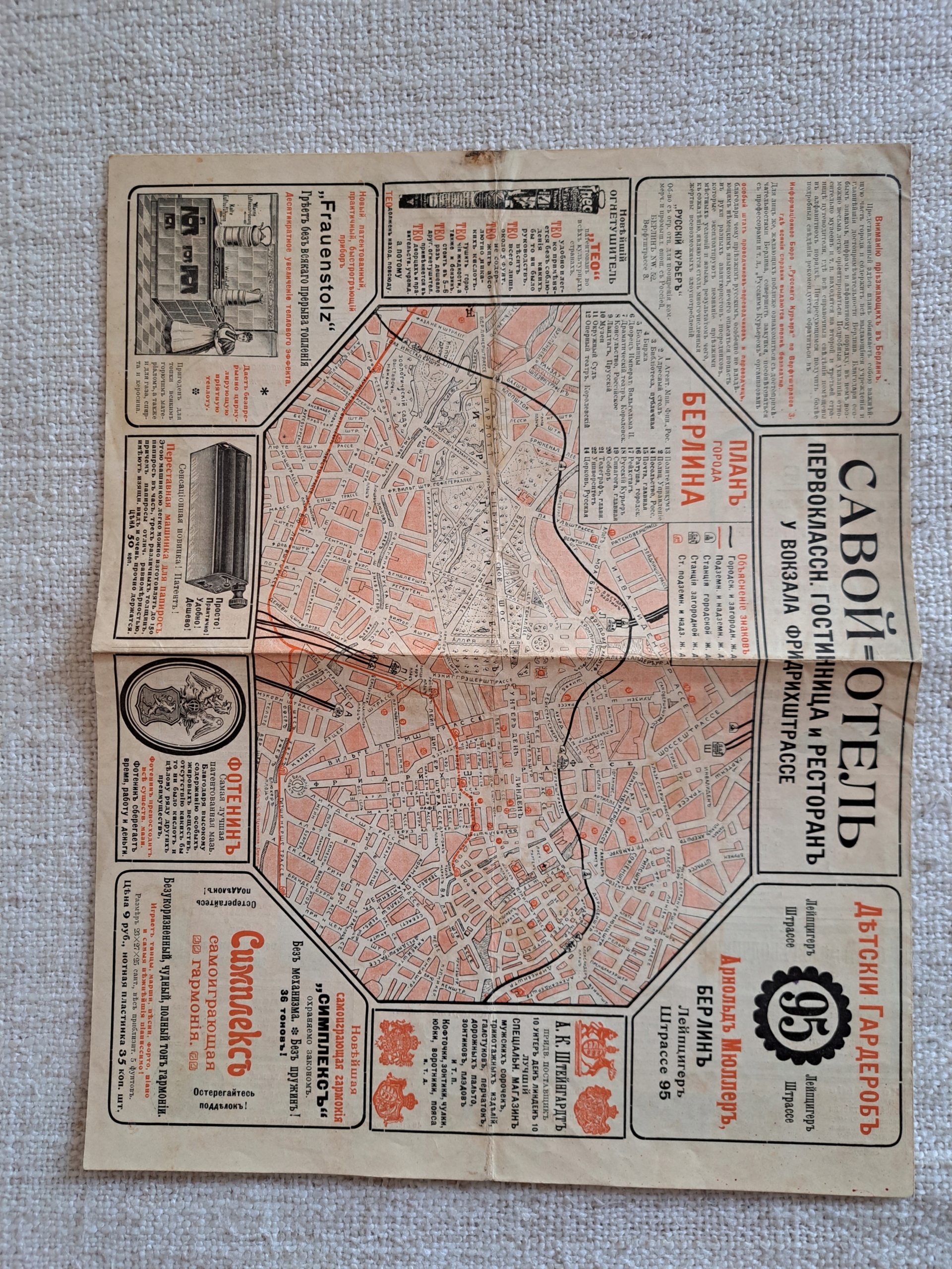 Стан: дуже хороший. Послідовний блок. Сторінки знебарвлені з віком. Додатком є 4-сторінковий "Russischer Kurier", написаний російською мовою.