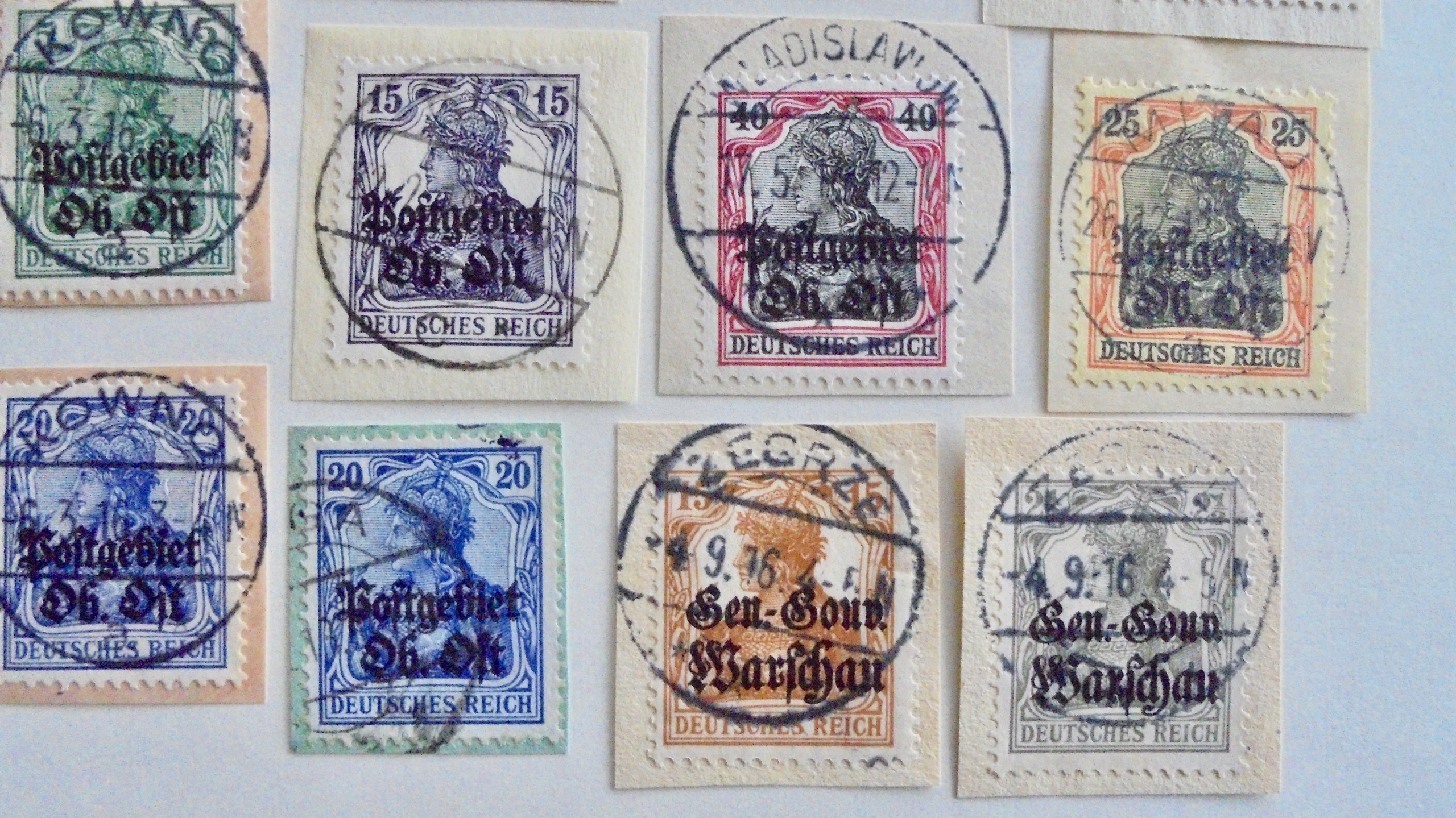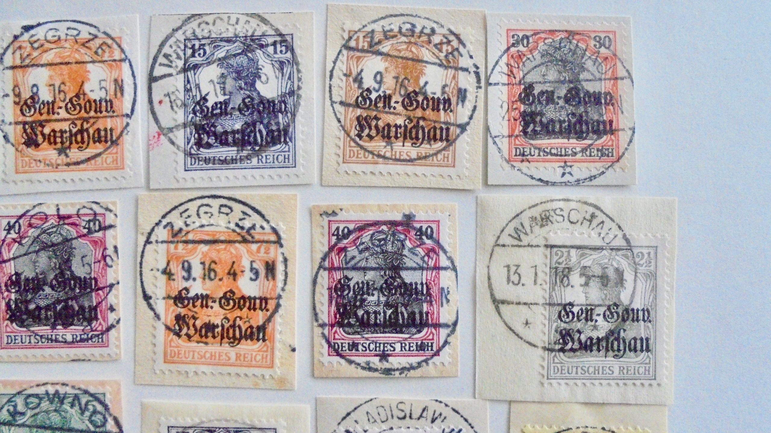 1916 Polska ZESTAW znaczków kasowanych na wycinkach z nadrukiem, stan dobry