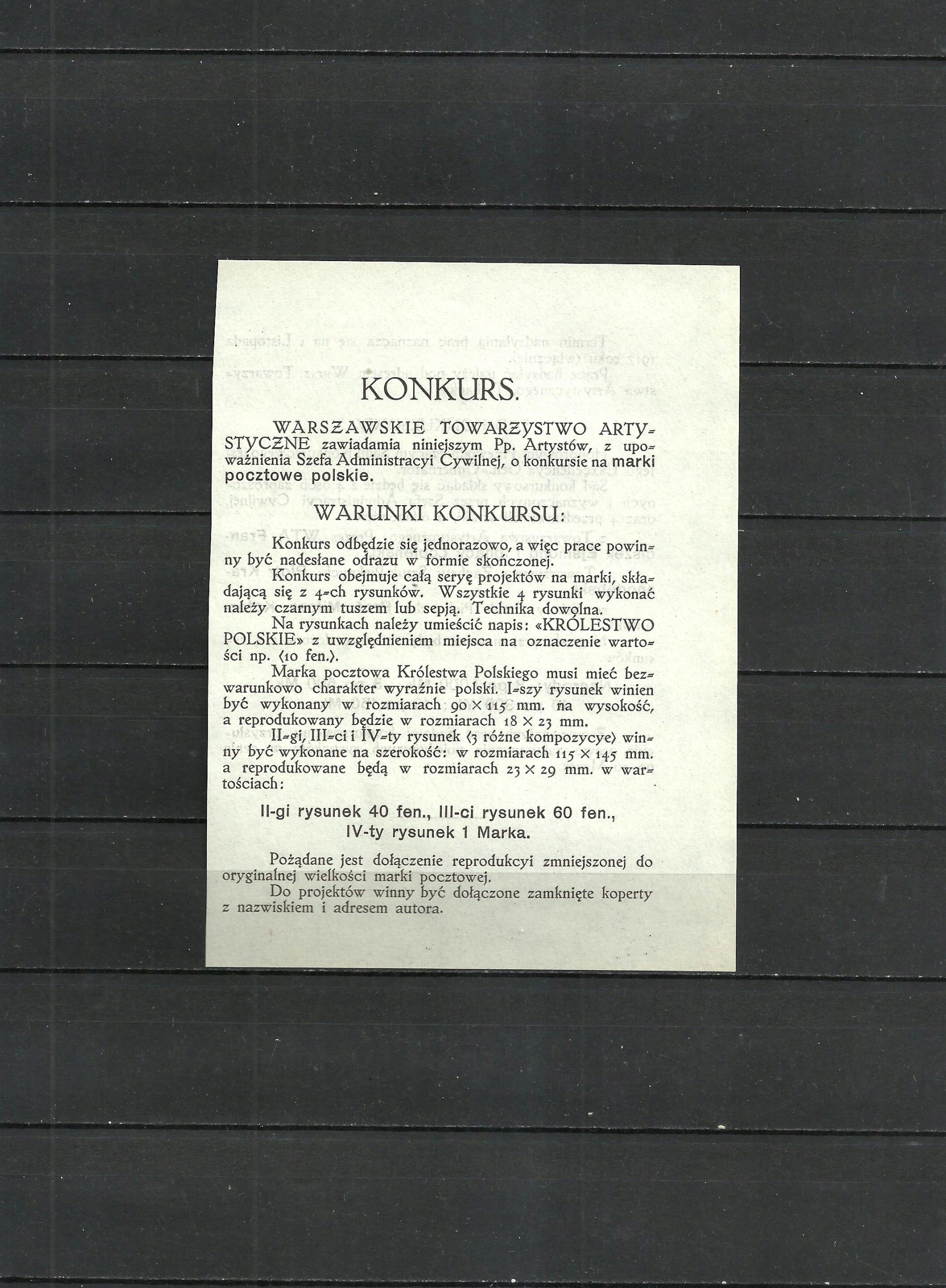 1918 Польща ЗБІРКА ПРОЕКТІВ ПОЛЬСЬКОГО КОРОЛІВСТВА. 130 шт