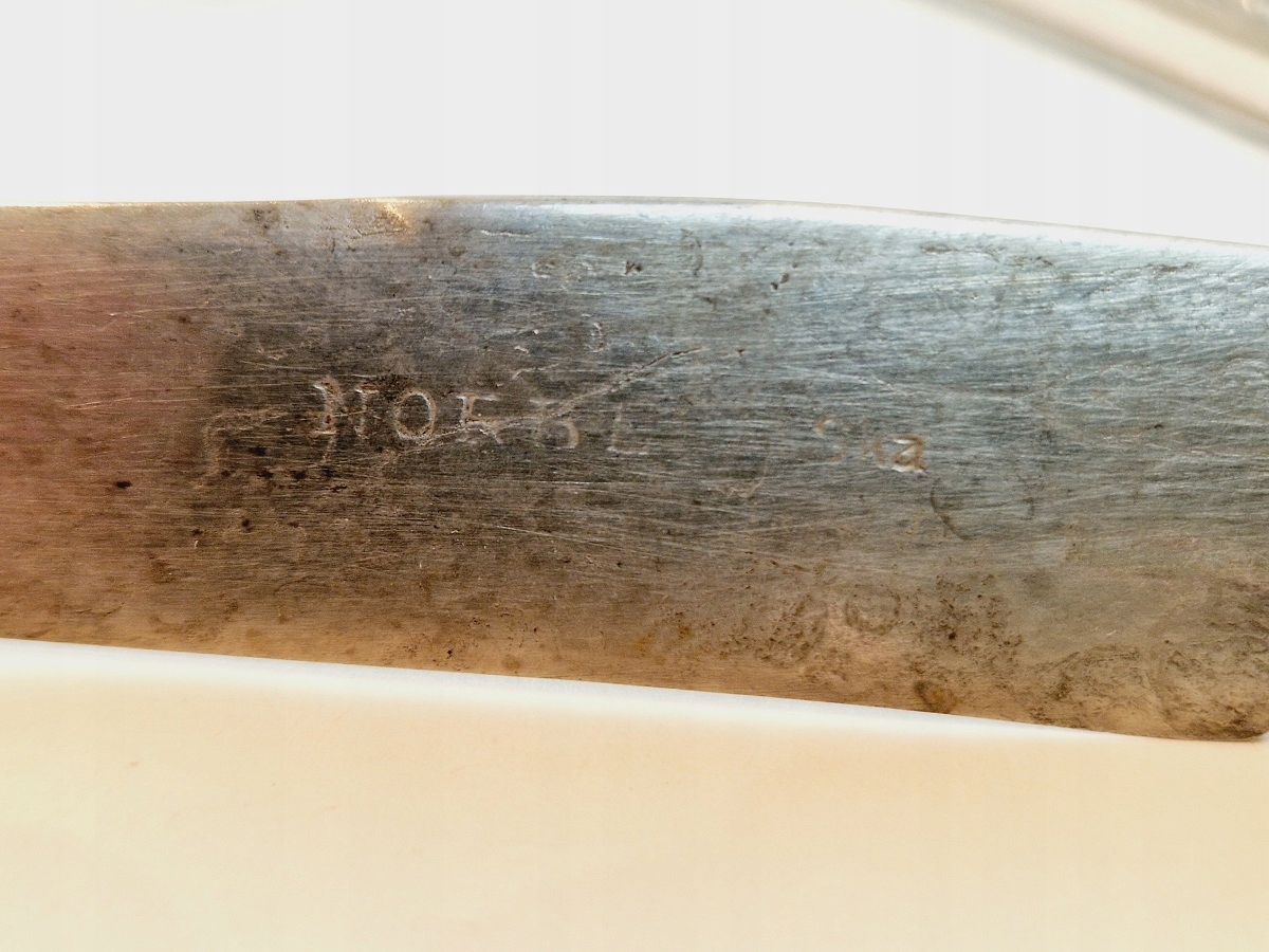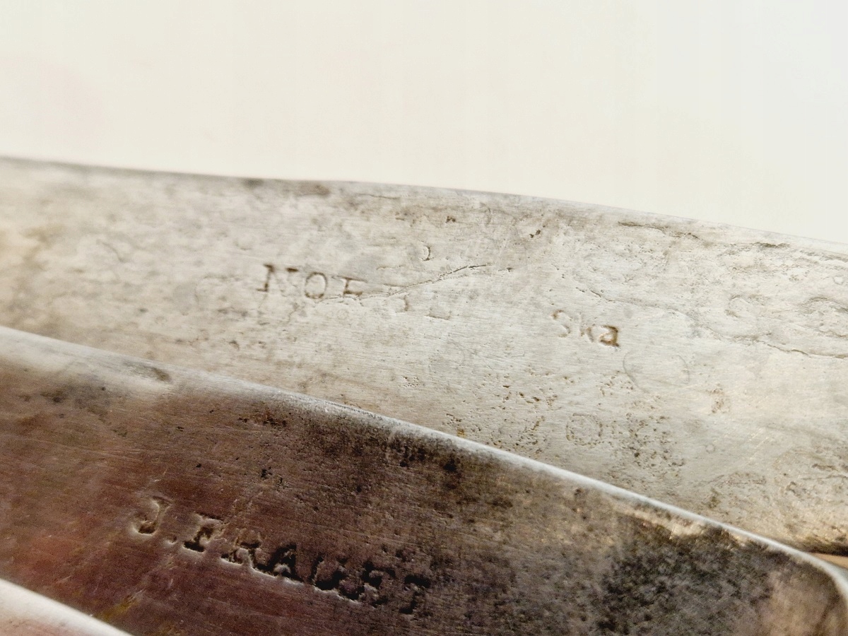 Леза ножів в середньому стані - звужені заточуванням - покриті з періодичними плямами іржі.