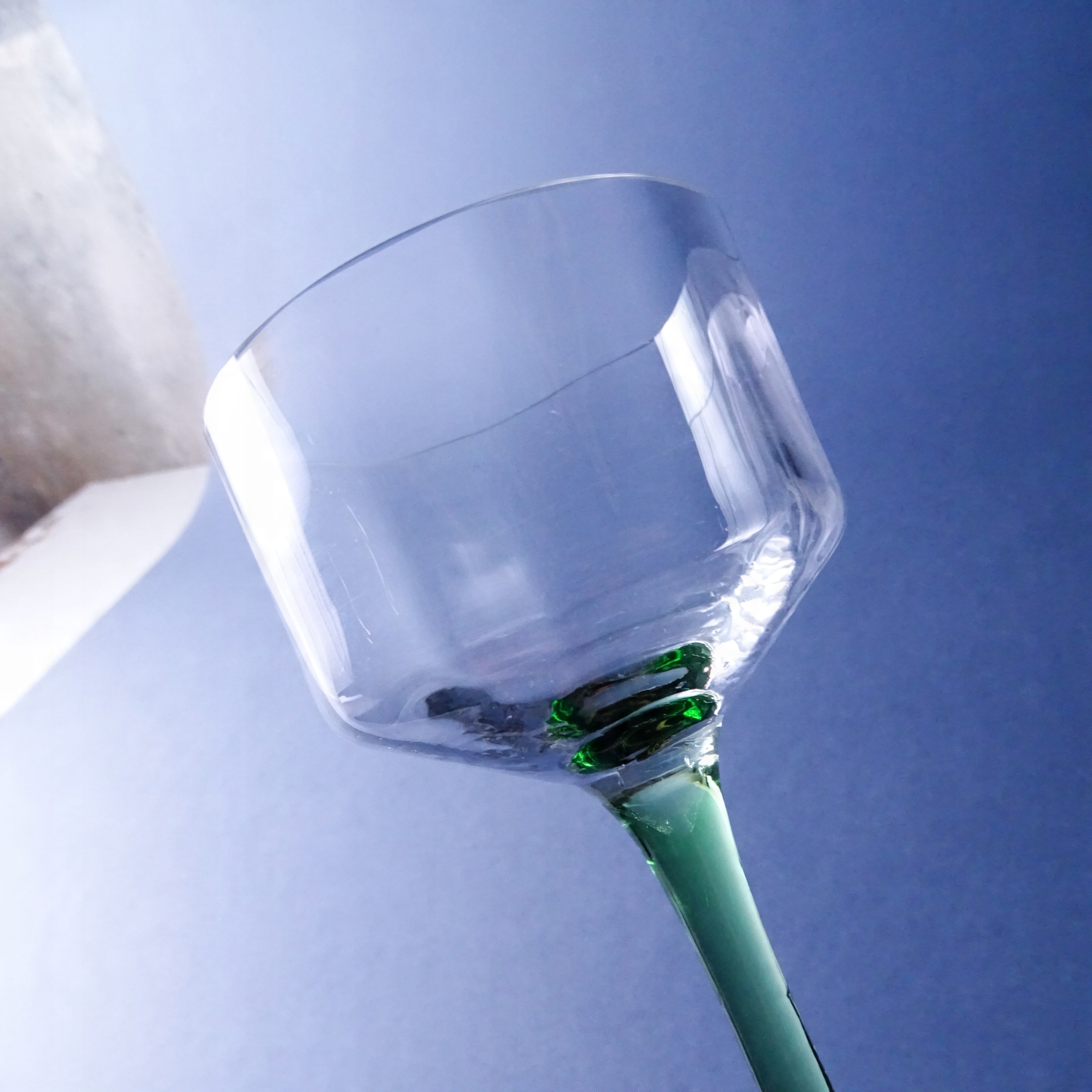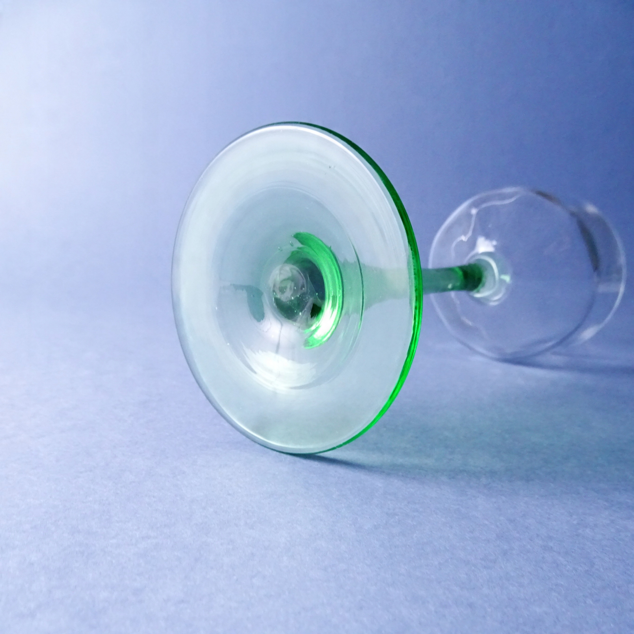 1920-ті/1930-ті роки, красива ручна видувна КРИШТАЛЕВА ЗЕЛЕНА НІЖКА