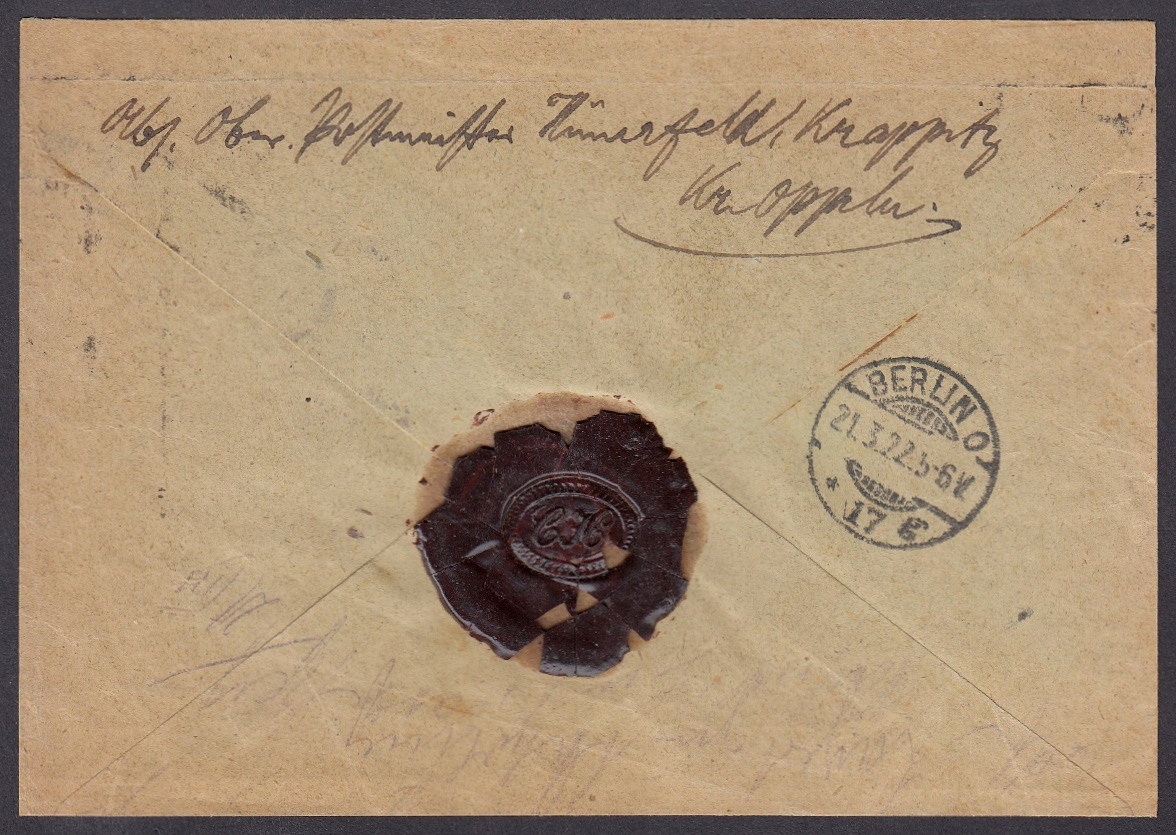 Рекомендований лист, надісланий 29 березня 1922 року з Крапковіце до Берліна