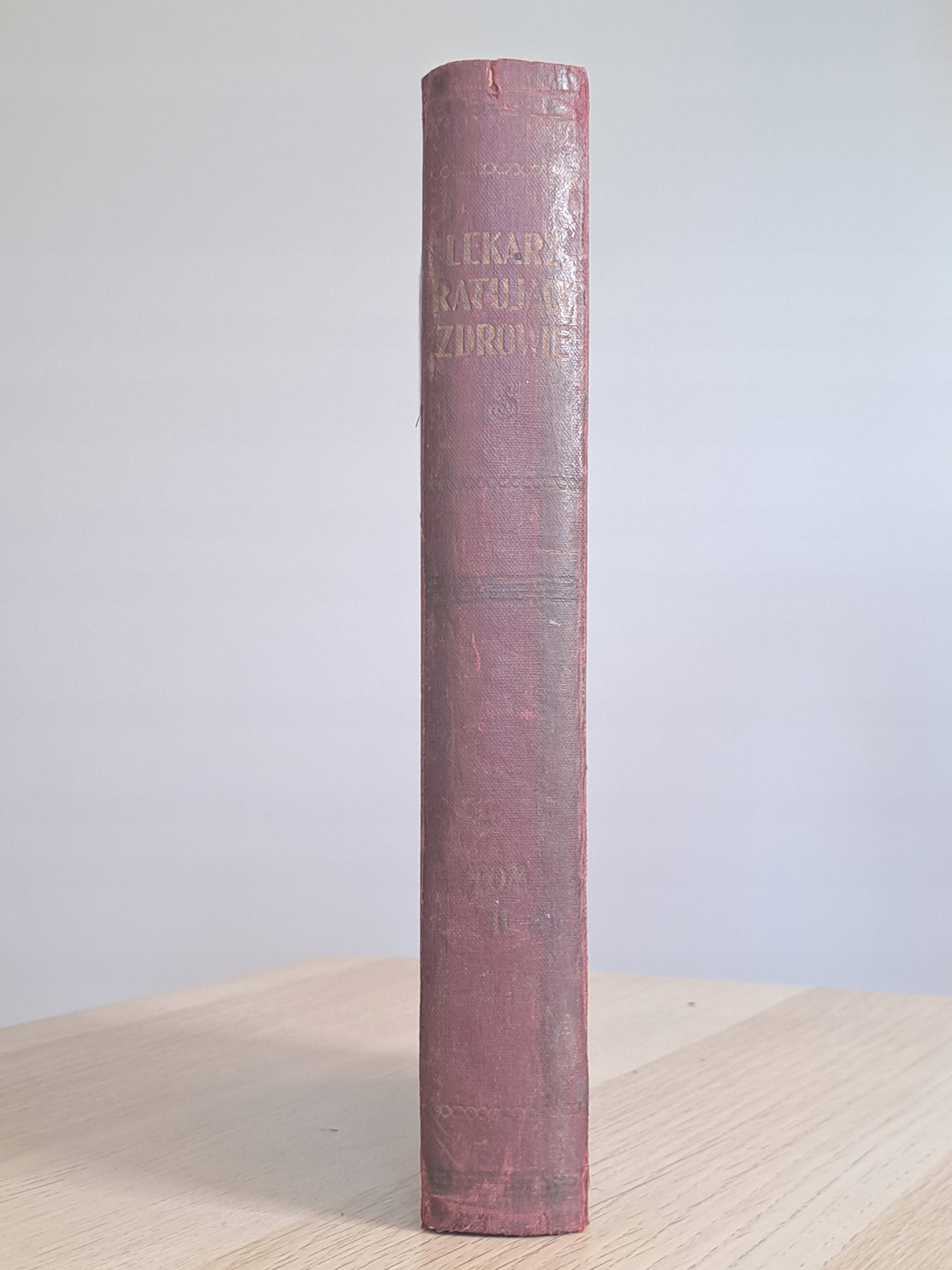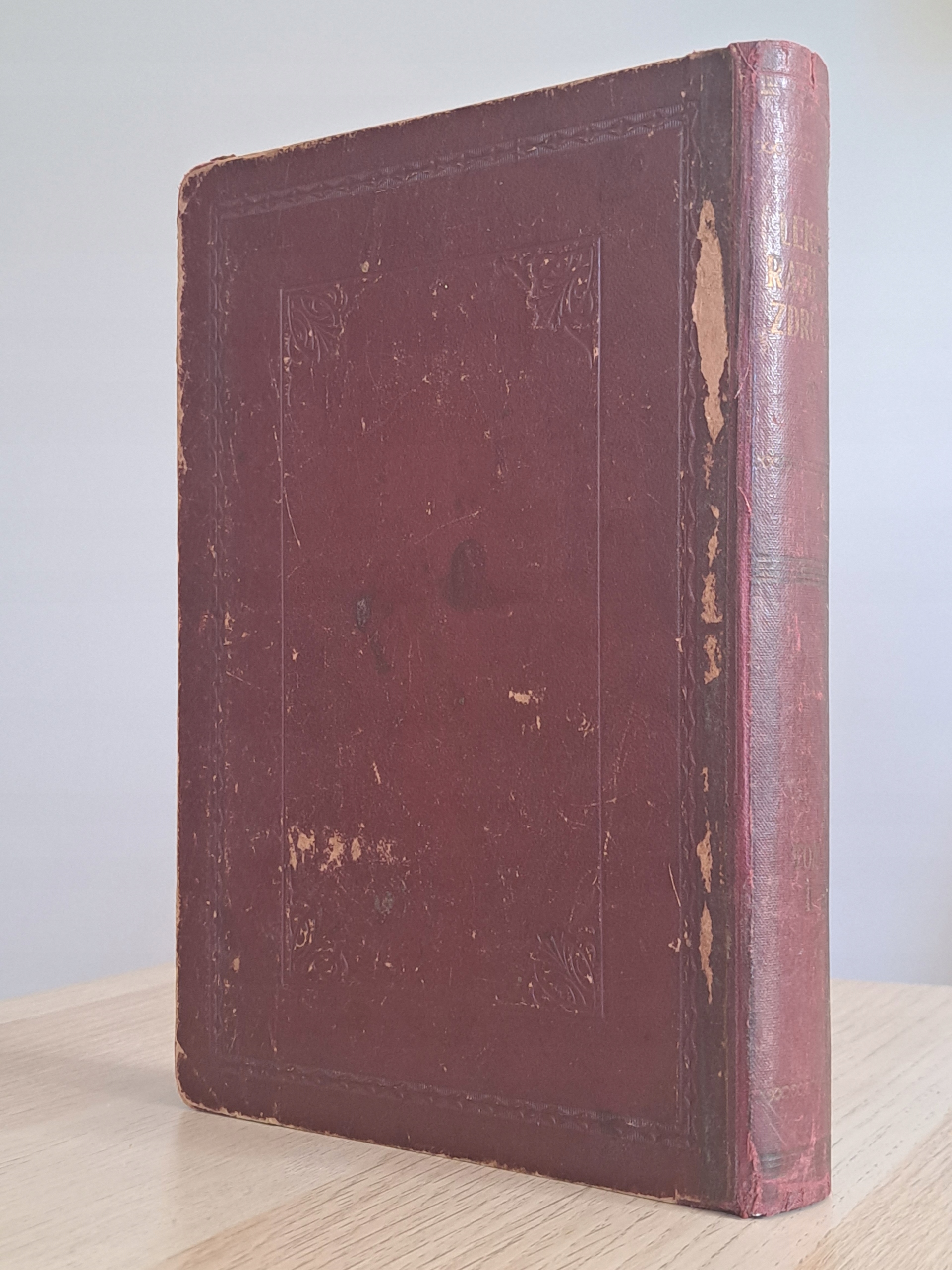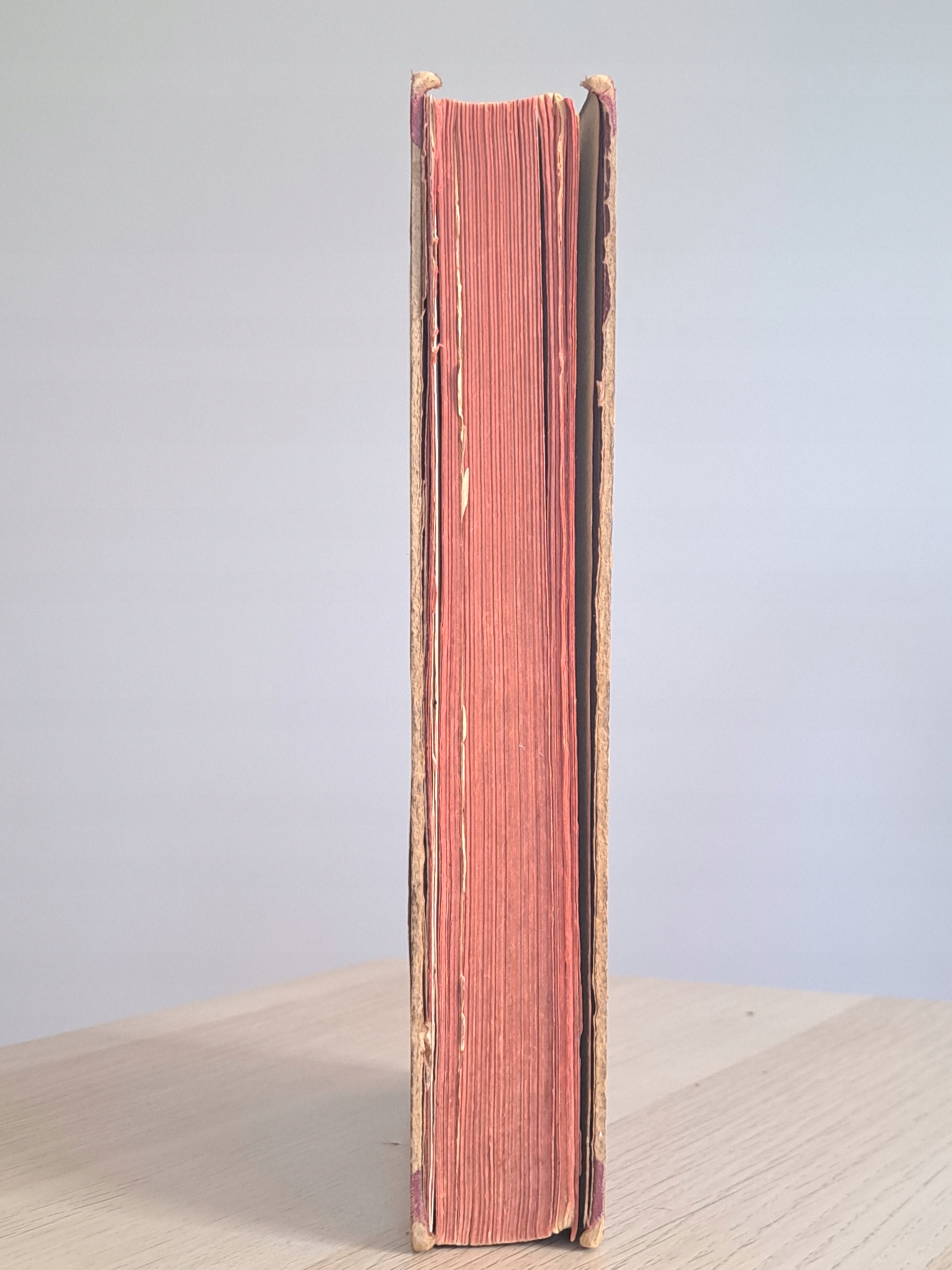 Стан: хороший. Послідовний книжковий блок. Сторінки мають зміну кольору, характерну для віку книги. Краї палітурки потерті. Кілька сторінок склеєні папером. Кілька сторінок вирвано. Шпон на передній обкладинці випуклий.