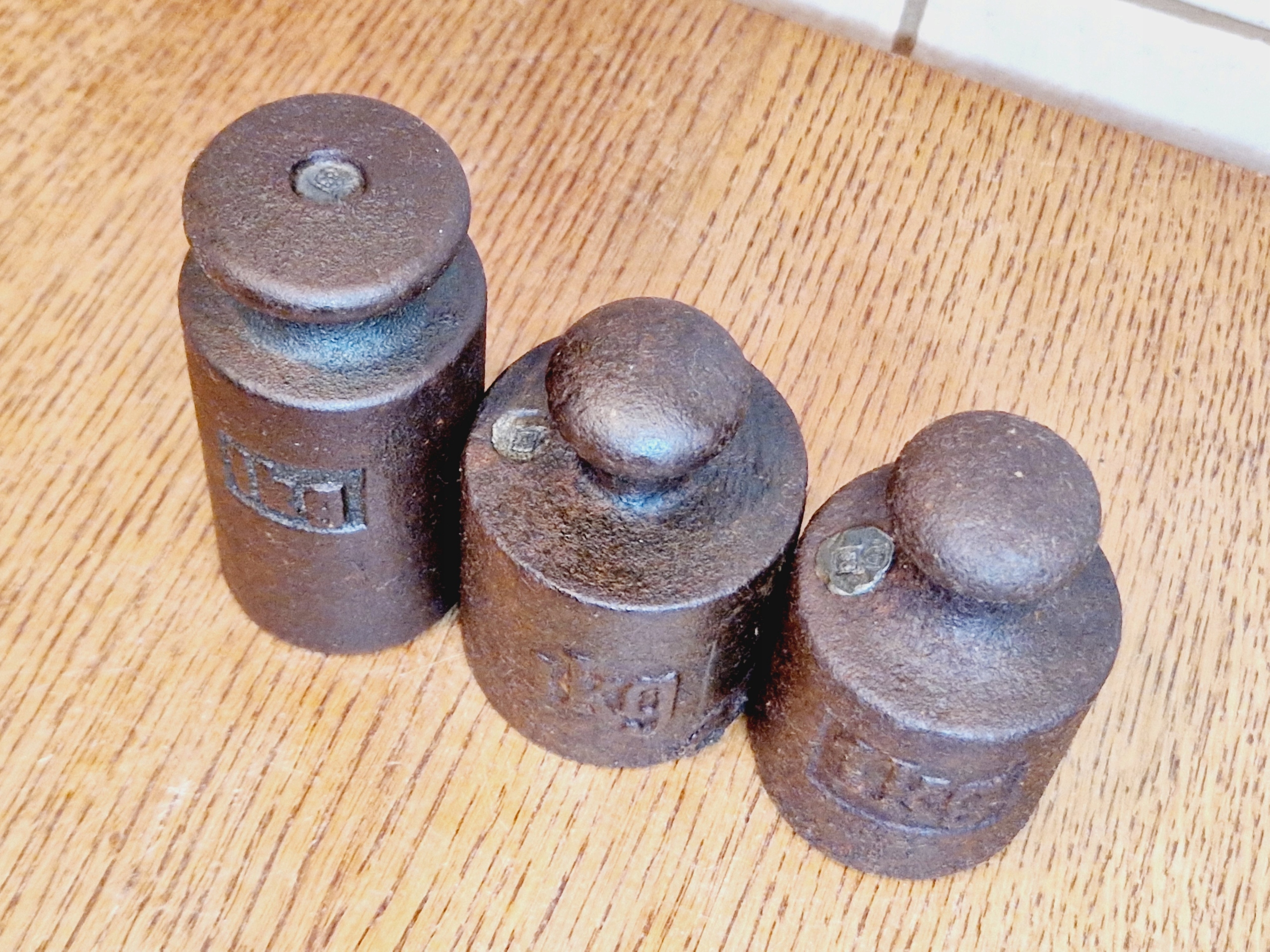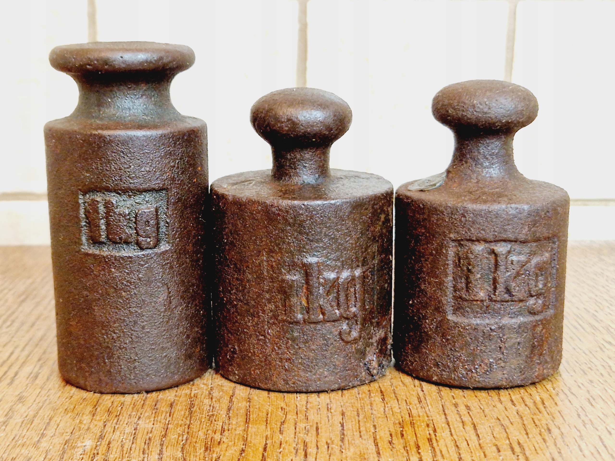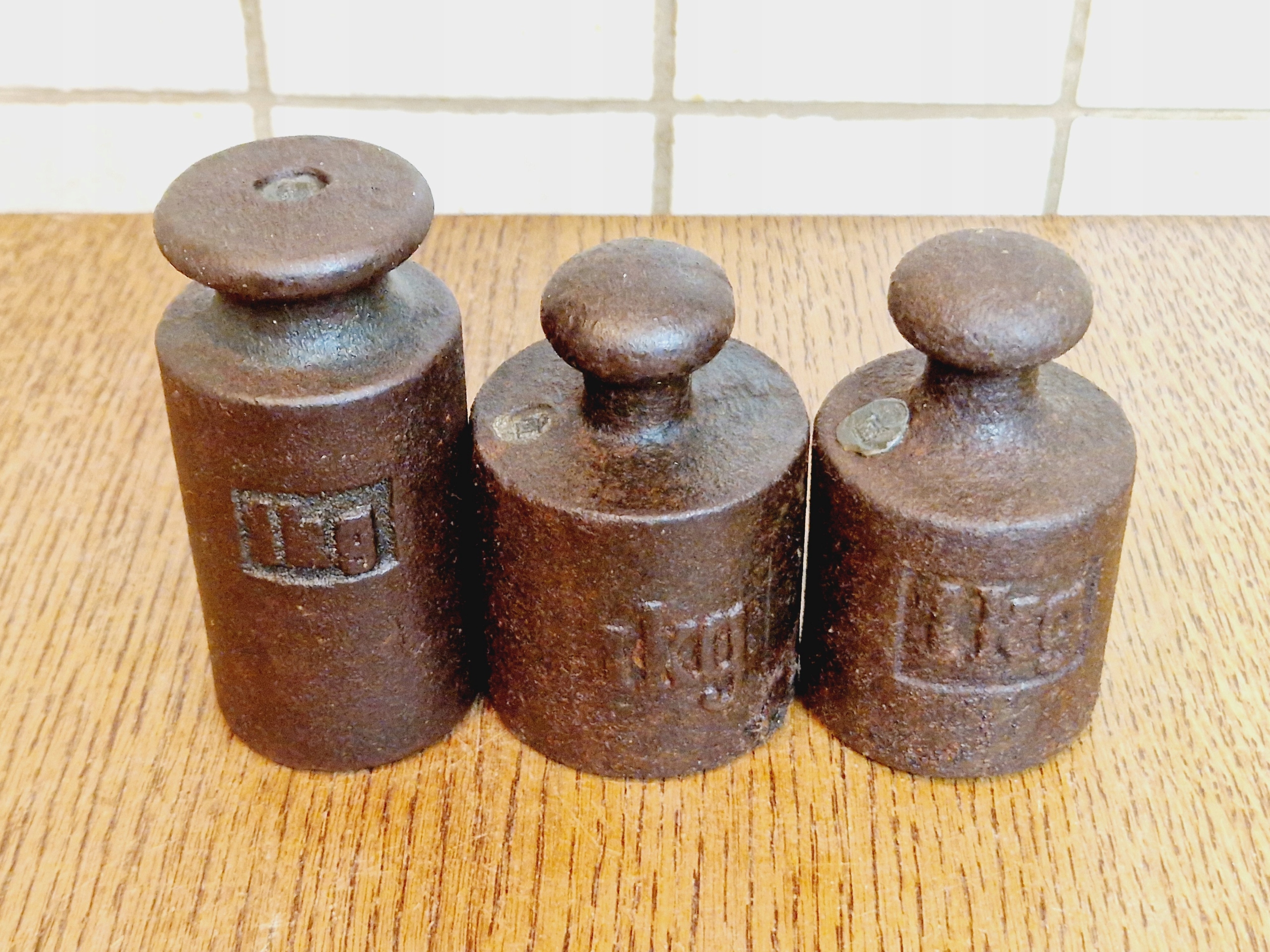 1930-ті/1940-ті роки 20 століття / 3 x 1 кг - АНТИЧНІ ЧАВУННІ ТОРГОВІ ВАГИ / 1908 р.