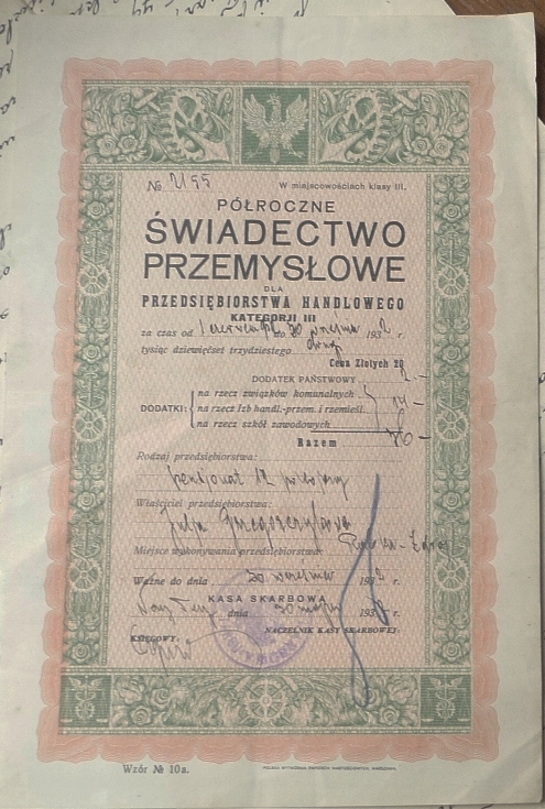 1932. ПІВРІЧНИЙ ПРОМИСЛОВИЙ СЕРТИФІКАТ RABKA-ZDRÓJ
