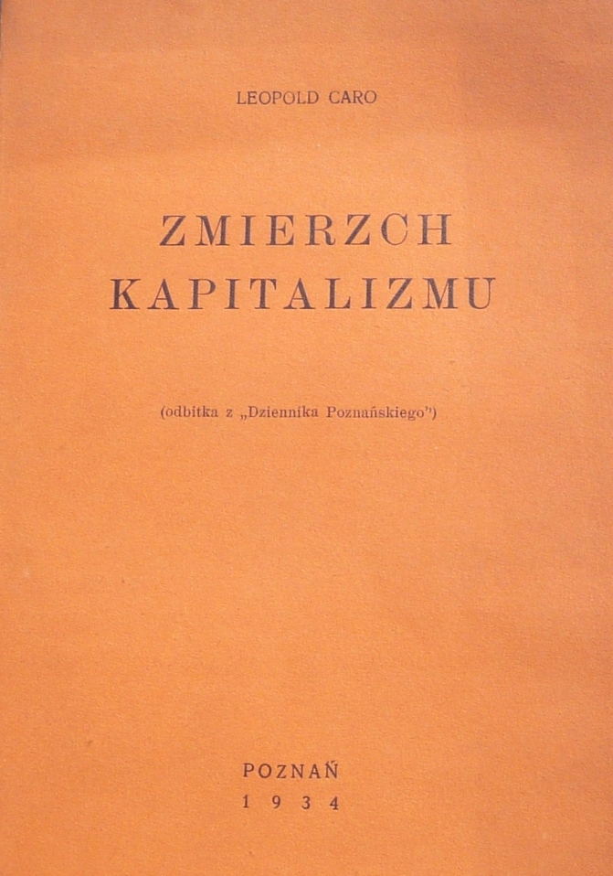 [КАПІТАЛІЗМ][ЕКОНОМІЧНИЙ ЛІБЕРАЛІЗМ][ЕКОНОМІКА] ЛЕОПОЛД КАРО – СУТІНКИ КАПІТАЛІЗМУ. (Відбиток з «Dziennik Poznański»). Познань, 1934, стор. 48. М'яка обкл., розмір 15х21,3см. Хороший стан, незначна зміна кольору першої сторінки обкладинки .127c