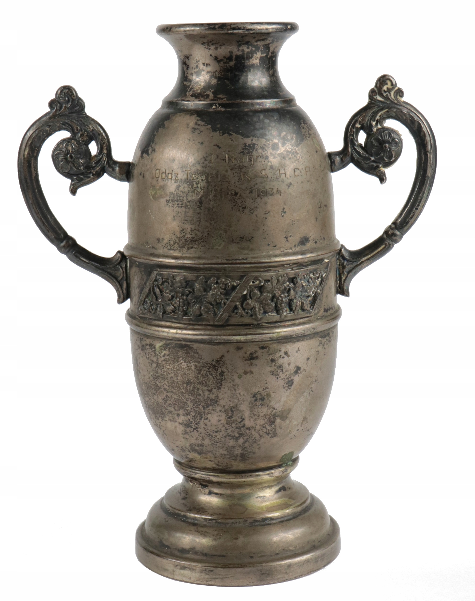 Унікальний тенісний кубок, 1-й приз Відділу тенісу Познанського спортивного клубу HCP з 1934 року. Чашка підписана знаком Kummer Warszawa. На животі гравіювання: