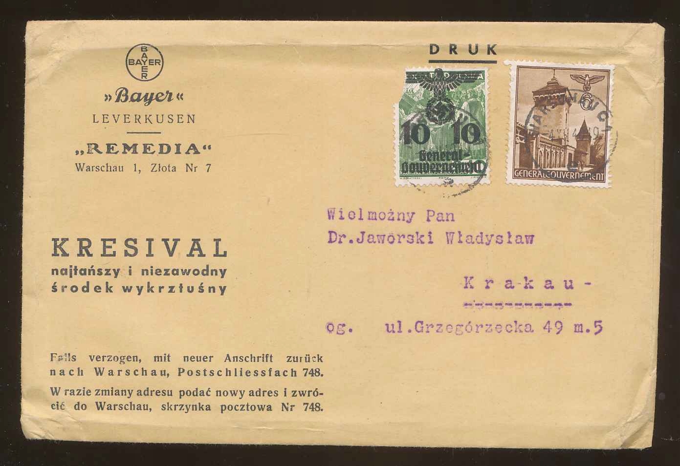 1940 ІІ СШ, ГГ, фірмовий конверт BAYER, ДРУК, WARSCHAU C 1 16гр.
