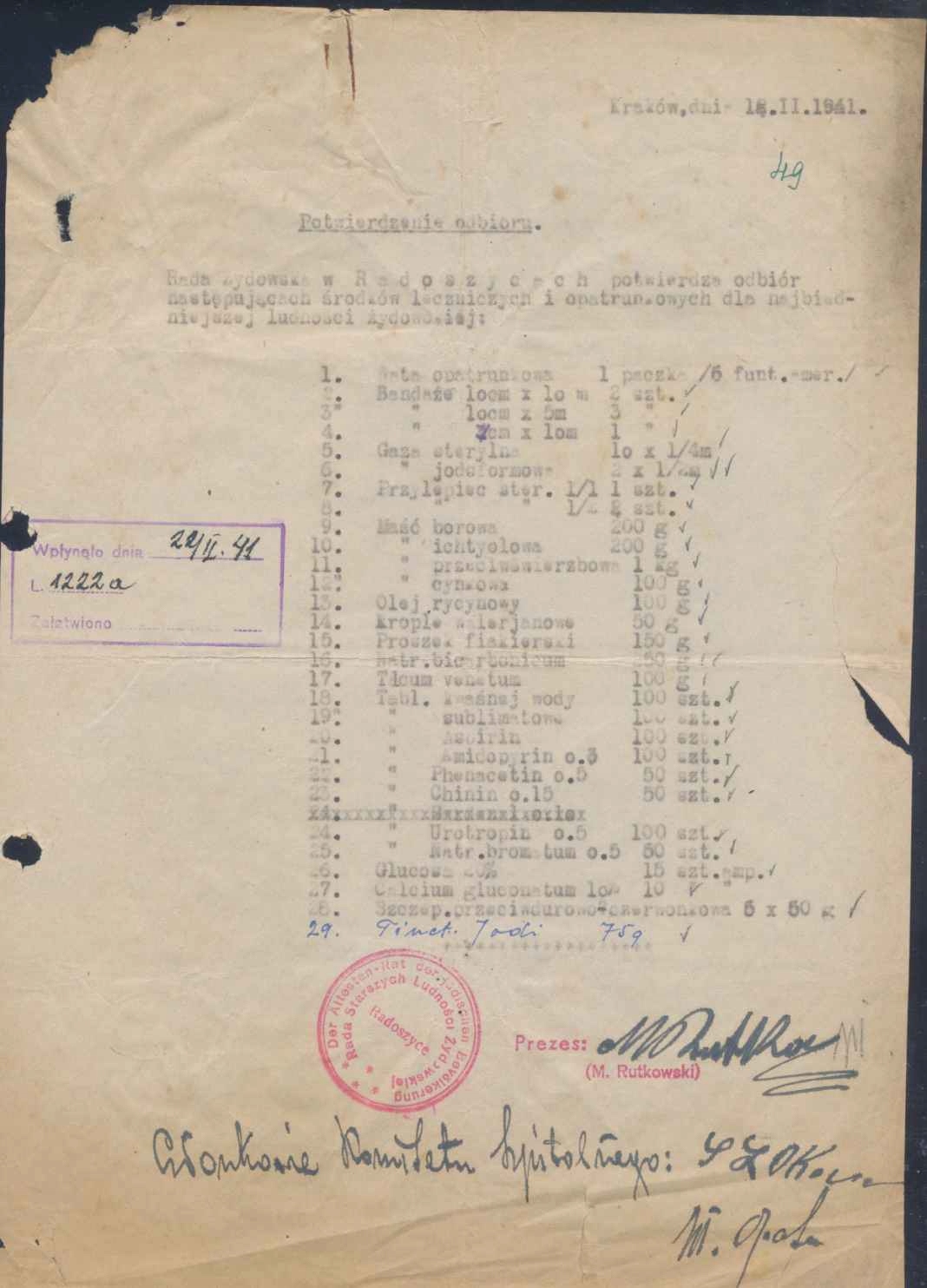 1941 РР, ГЕТТО ЄВРЕЙСЬКІ РАДОШИЦІ, документ РСЛЖ.